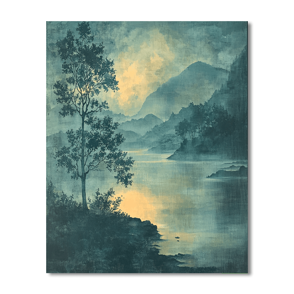Inspired by the haunting and atmospheric works of James Whistler, this piece captures the ethereal interplay of light and shadow in a misty landscape. Its perfect for adding a mysterious and contemplative element to a space, ideal for a study or a dimly lit hallway. The subdued palette and subtle gradations of light create a hauntingly beautiful scene that captivates and intrigues.