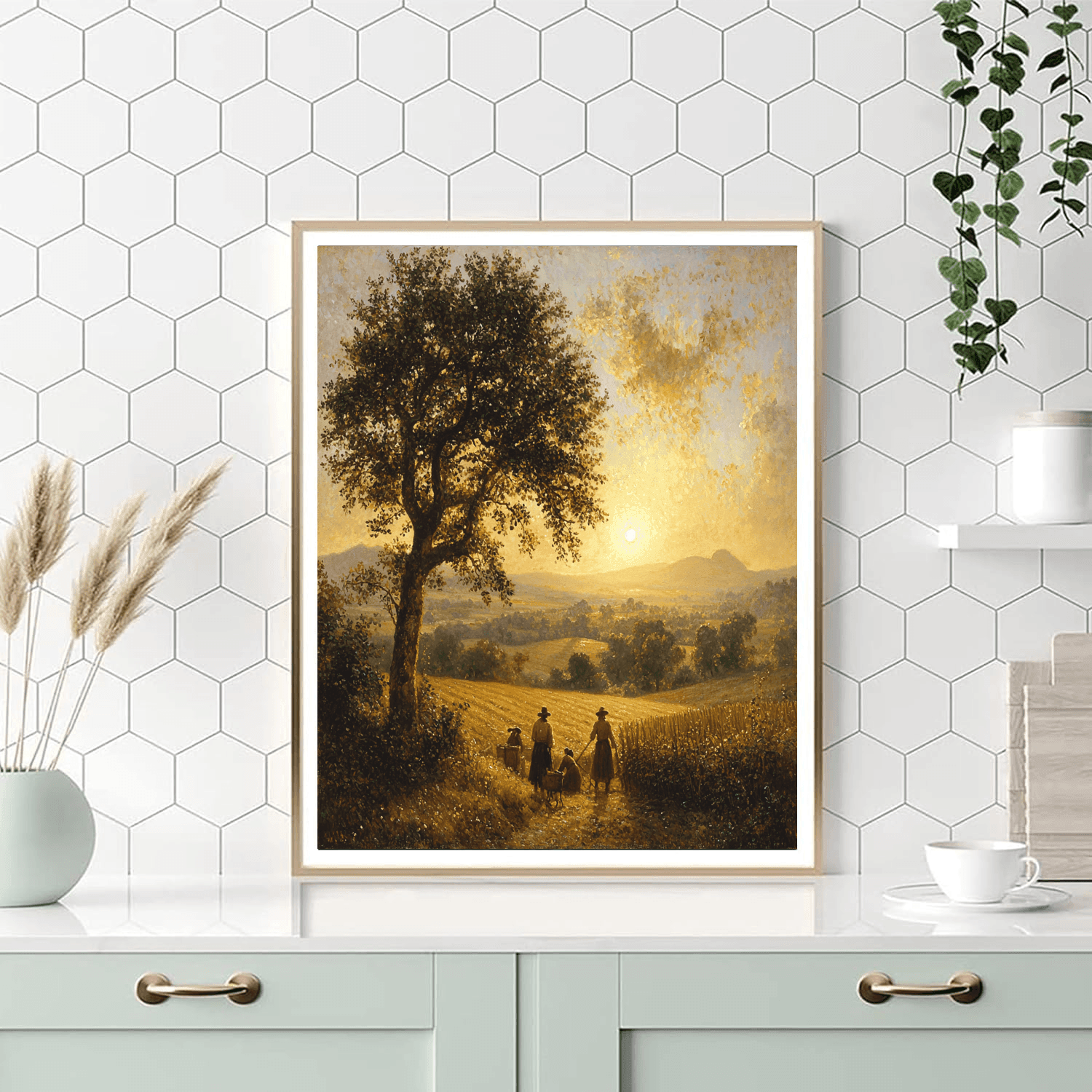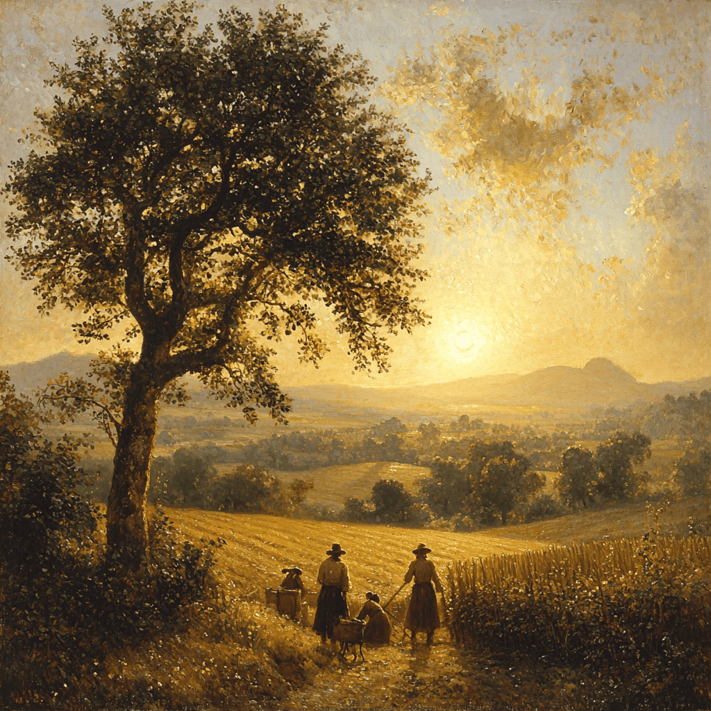 Influenced by Jean-François Millets depictions of peasant life, Rustic Serenity portrays the simple beauty and dignity of rural scenes. This piece is especially fitting for dining rooms or country homes, offering a connection to traditional values and the tranquil pace of country living.
