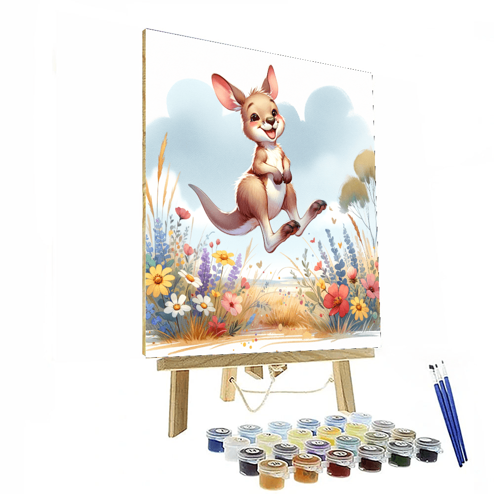 This delightful product features a joyful little kangaroo hopping through the outback. The kangaroo is depicted in a playful and friendly manner, surrounded by grass and wildflowers. This product encourages a love for wildlife and can be displayed in a childs bedroom or playroom, bringing joy and warmth to their space.