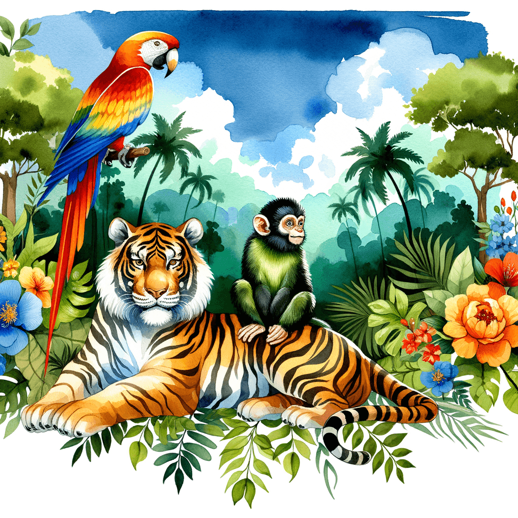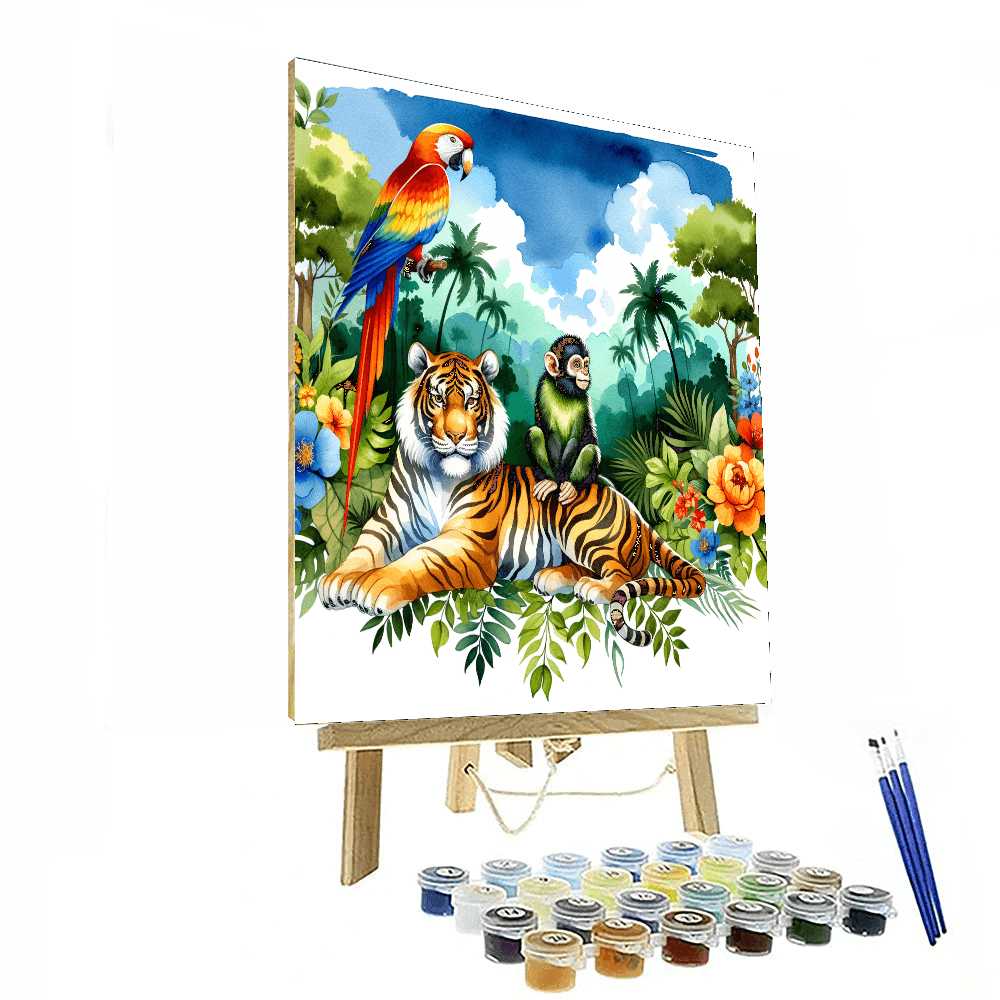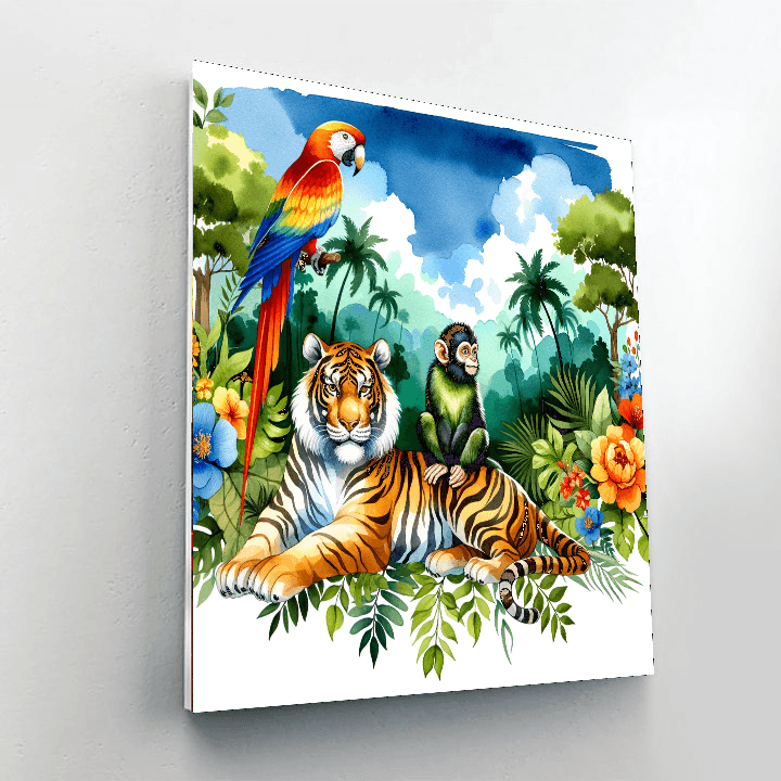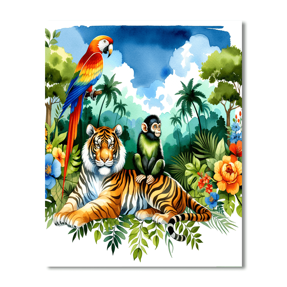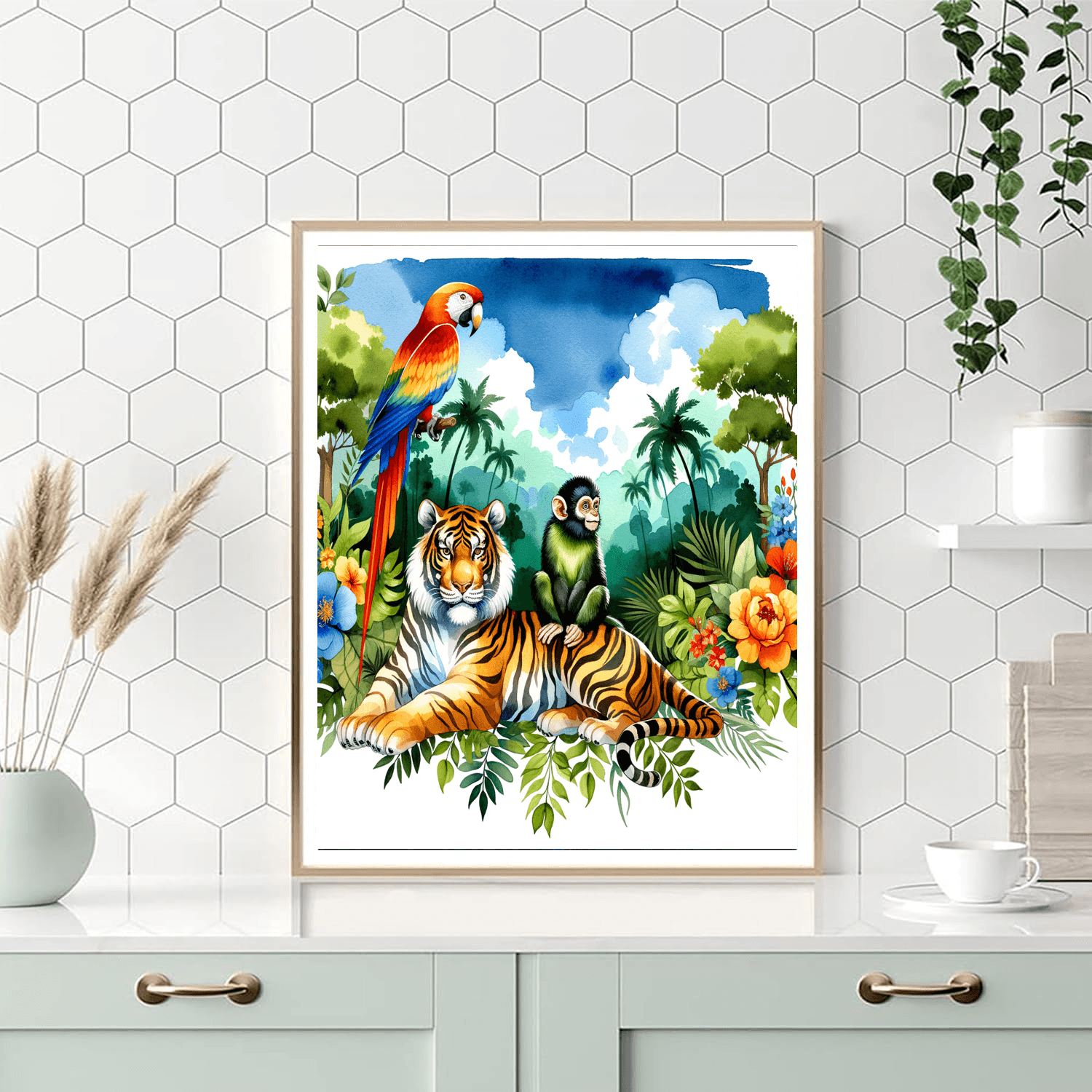 This kit takes kids on a thrilling jungle adventure, featuring a group of animals including a tiger, a monkey, and a parrot in a lush jungle. Perfect for young explorers, this kit can teach kids about different species and their habitats. Ideal for display in a kids bedroom or a playroom.