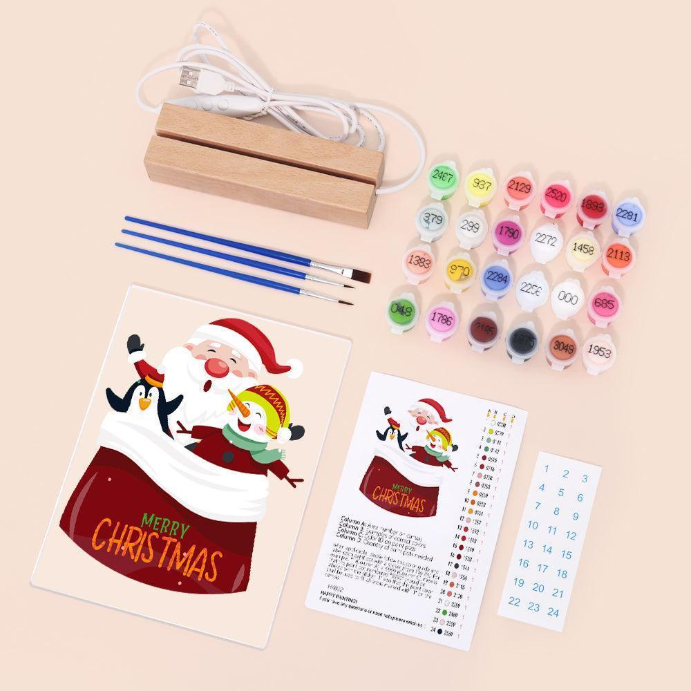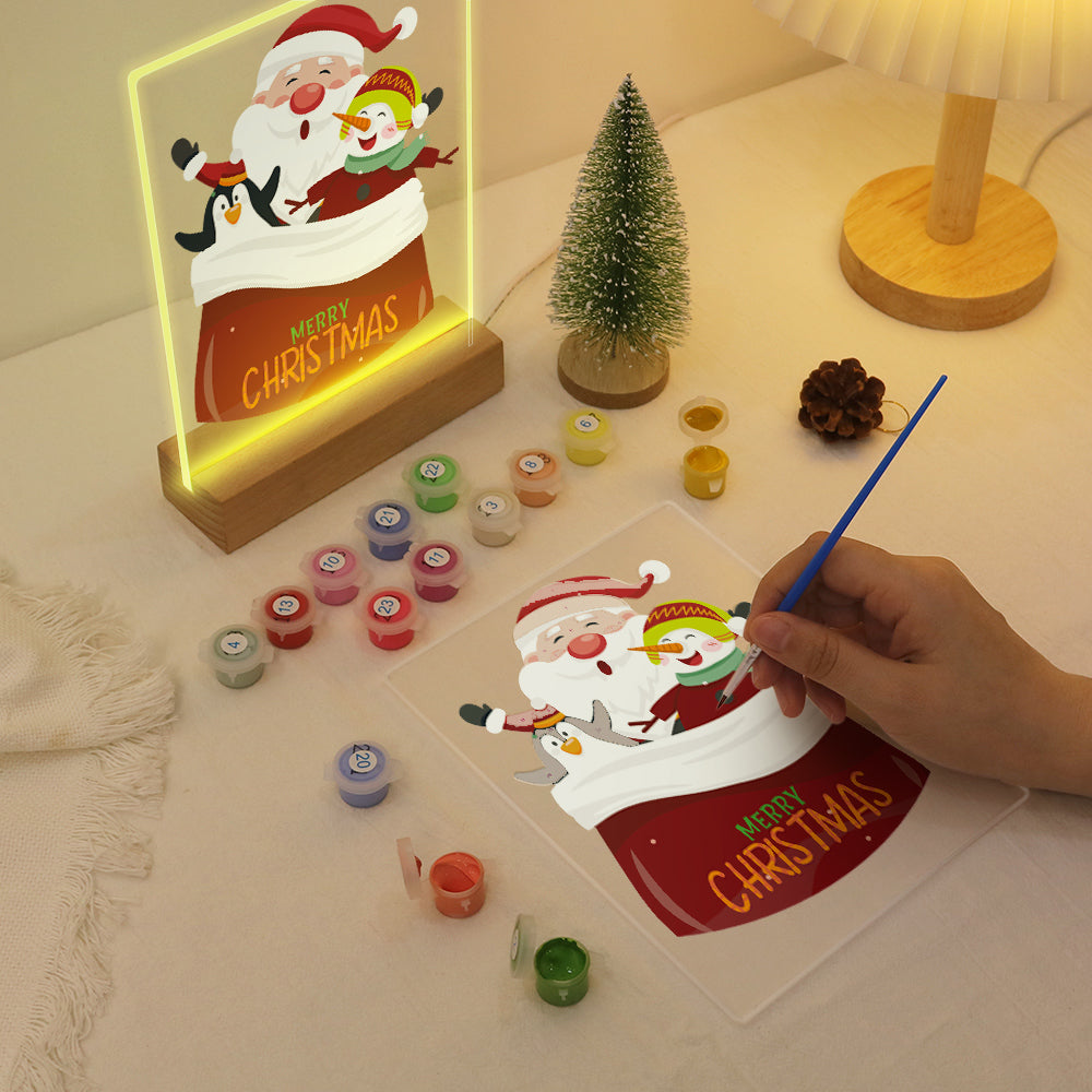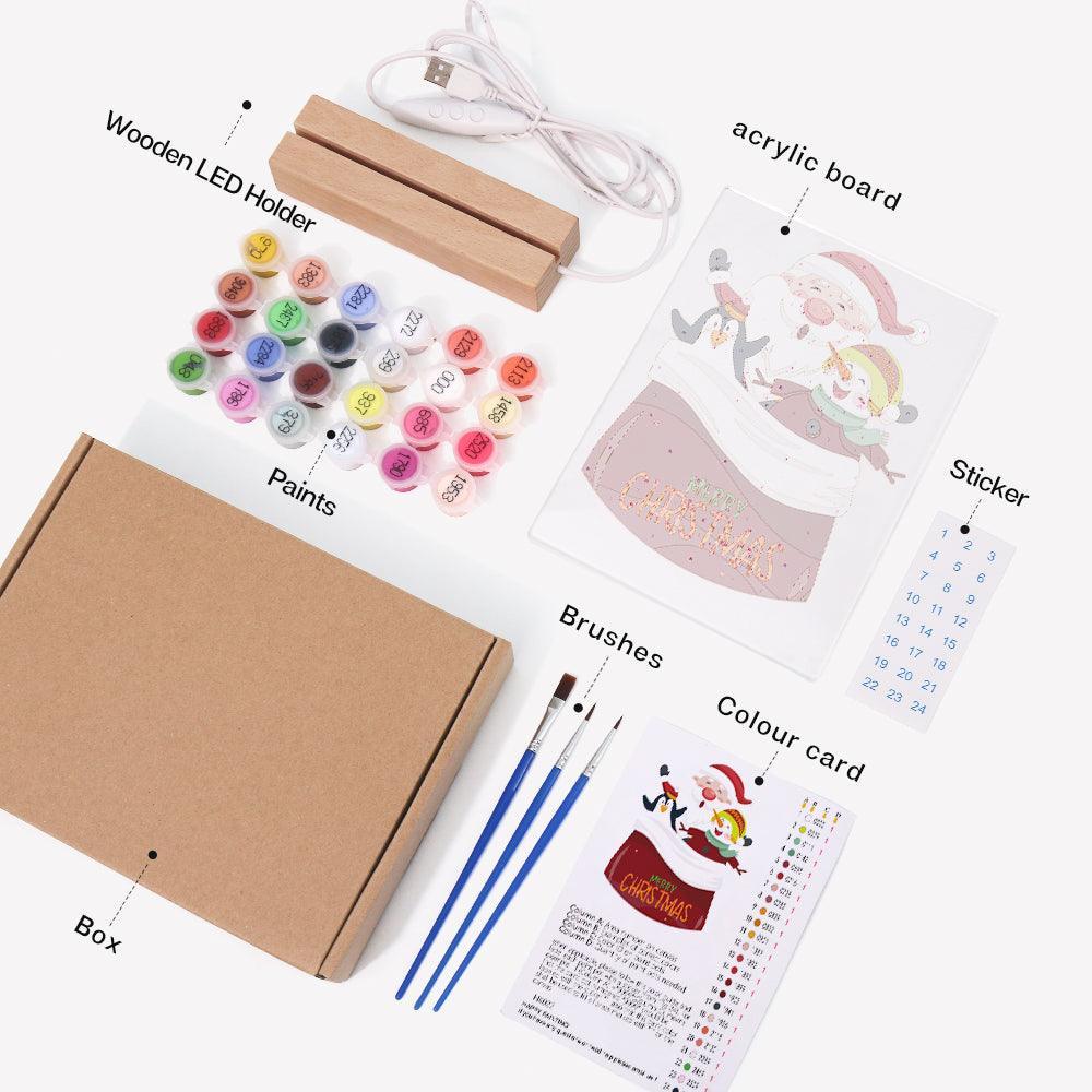 Celebrate the holidays with the LED Santa And Friends Paint by Numbers Kit. This charming kit features Santa and his cheerful companions, allowing you to create a festive scene with ease. It includes a pre-printed art board, vibrant acrylic paints, and precision brushes for detailed painting. The LED base adds a cozy glow, making it holiday display and a thoughtful gift for DIY enthusiasts.