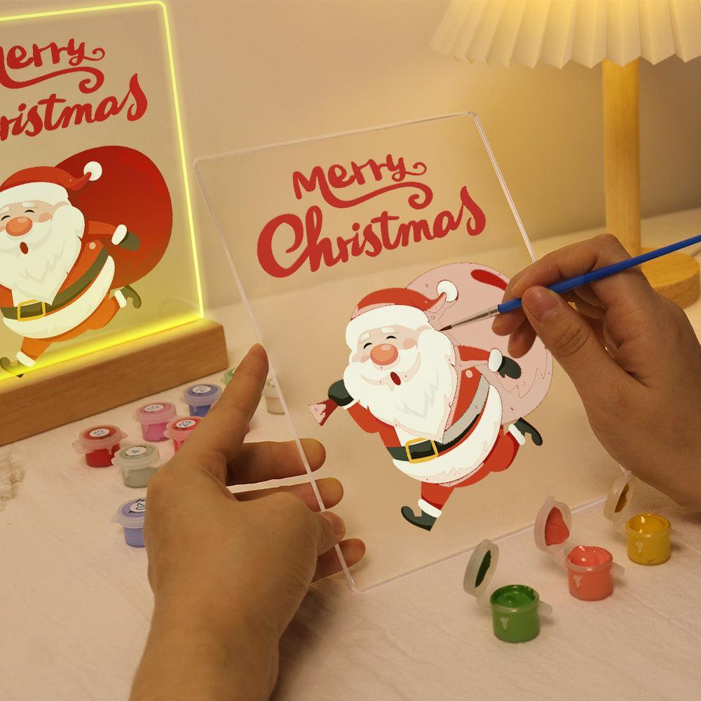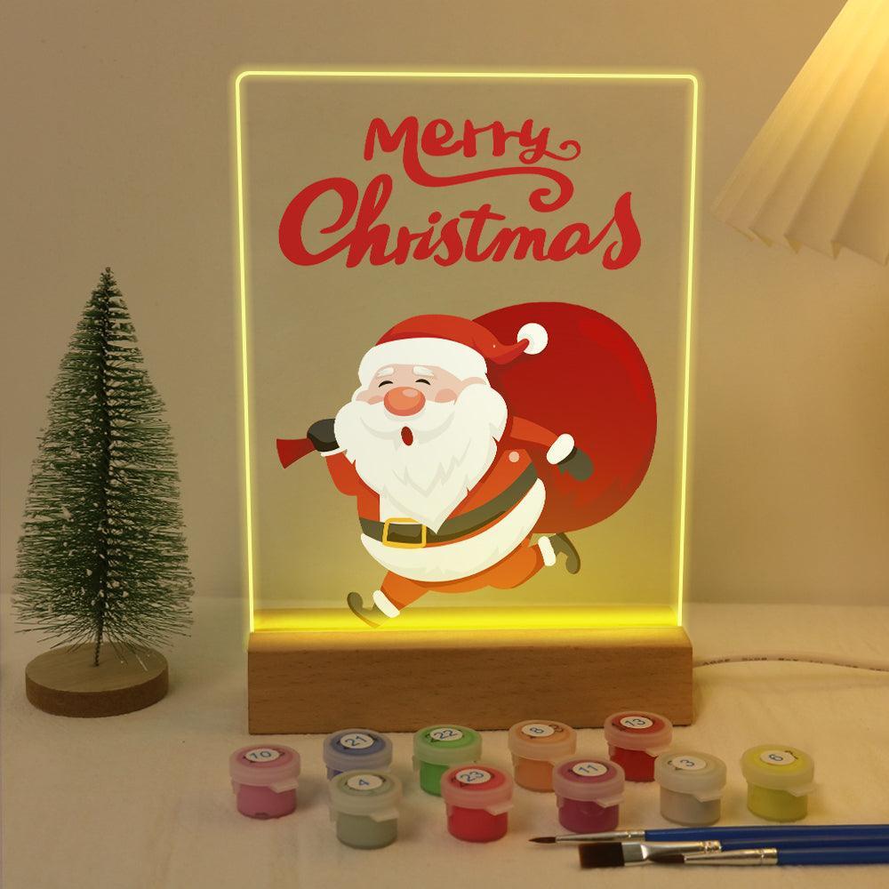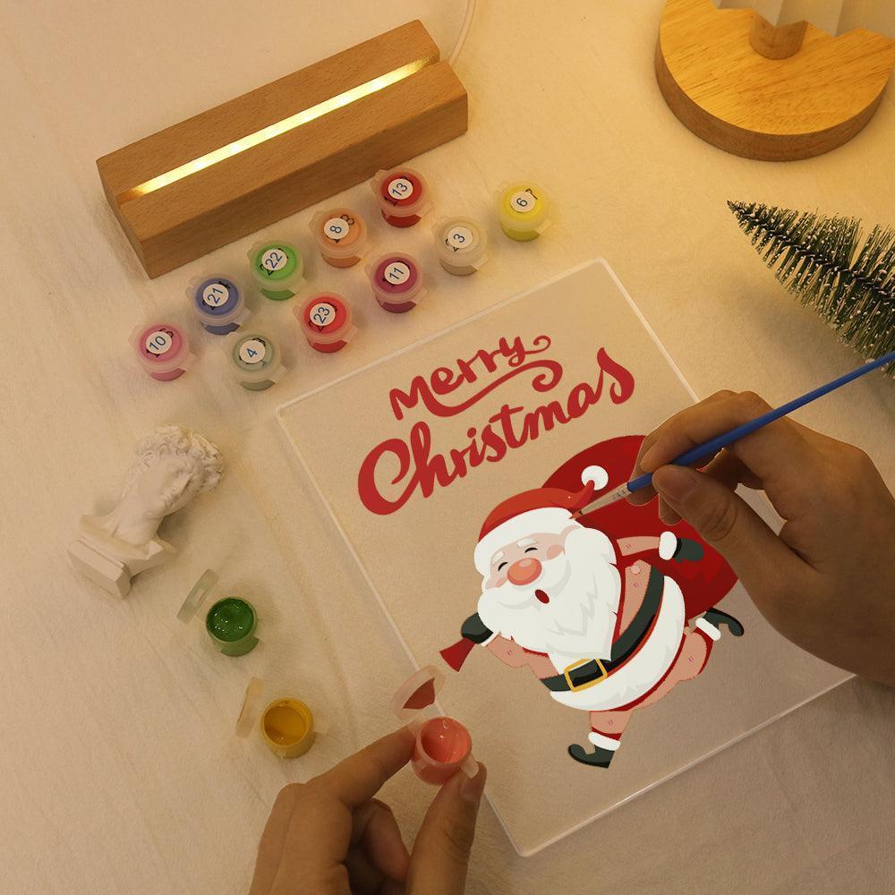 Celebrate the holiday season with the LED Santa Merry Christmas Paint by Numbers Kit. This DIY art kit features a pre-printed art board, bright acrylic paints, and detailed brushes for easy and enjoyable painting. The LED base adds a warm, glowing touch to your completed artwork, making it an piece for holiday décor or a wonderful festive gift for someone special.