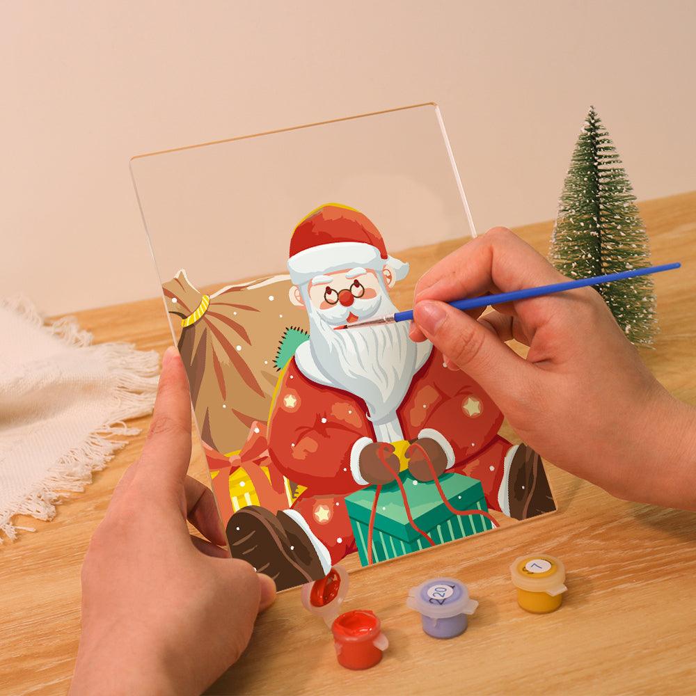 Create a glowing holiday scene with this LED Santa With Gifts Paint By Numbers Kit. This set includes a high-quality pre-printed art board with clear outlines, vibrant acrylic paints, and precision brushes for detailed painting. The LED base lights up the finished piece, adding a warm, festive touch to your décor or serving as a thoughtful Christmas gift.