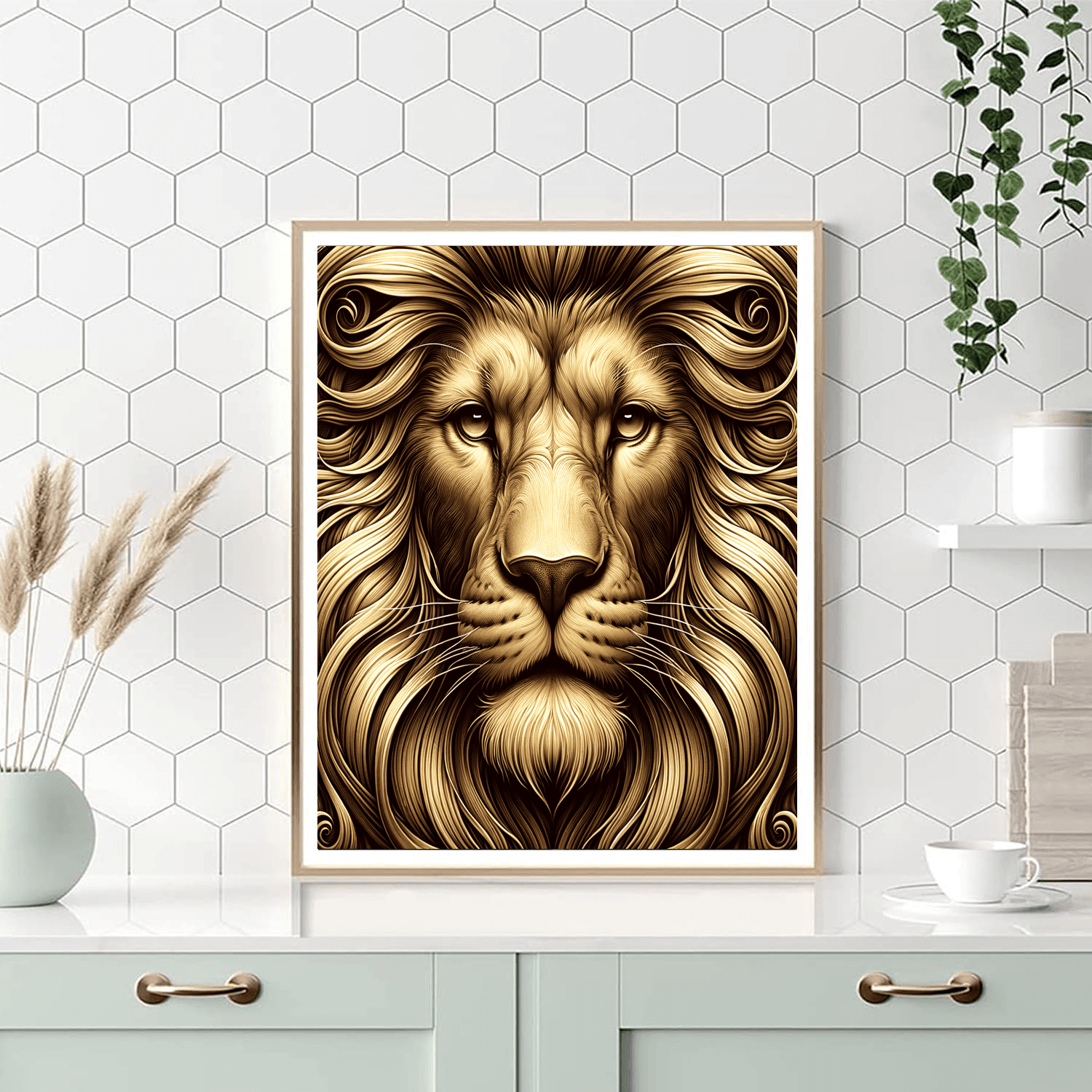 Capture the regal beauty of a majestic lion with this stunning portrait. Featuring a close-up of a lions face with its piercing eyes and flowing mane, this artwork is perfect for a living room or office, adding a touch of strength and elegance.