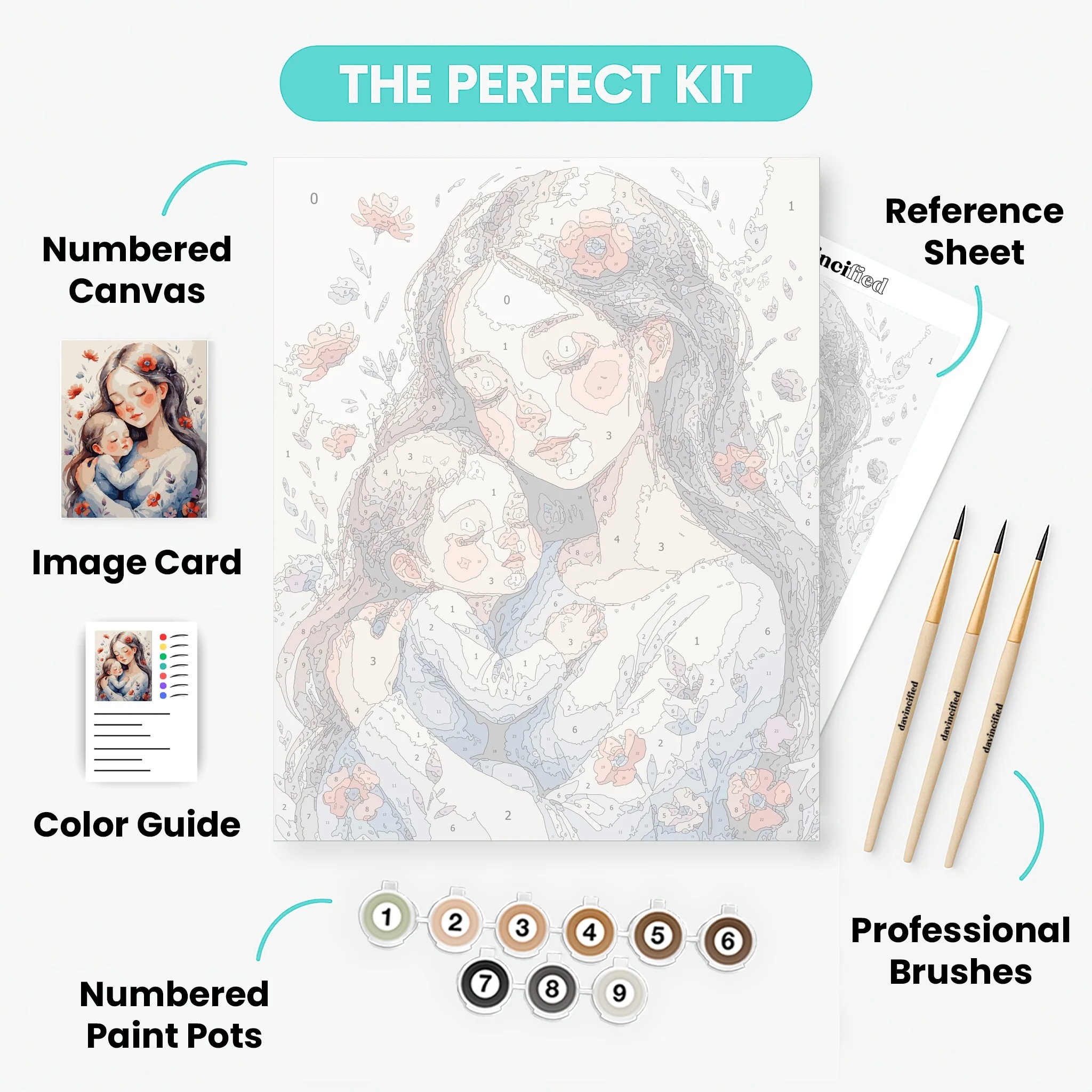 The technical build of this Maternal Connection 16x20 Inch Painting by Numbers Kit is defined by the following parameters: