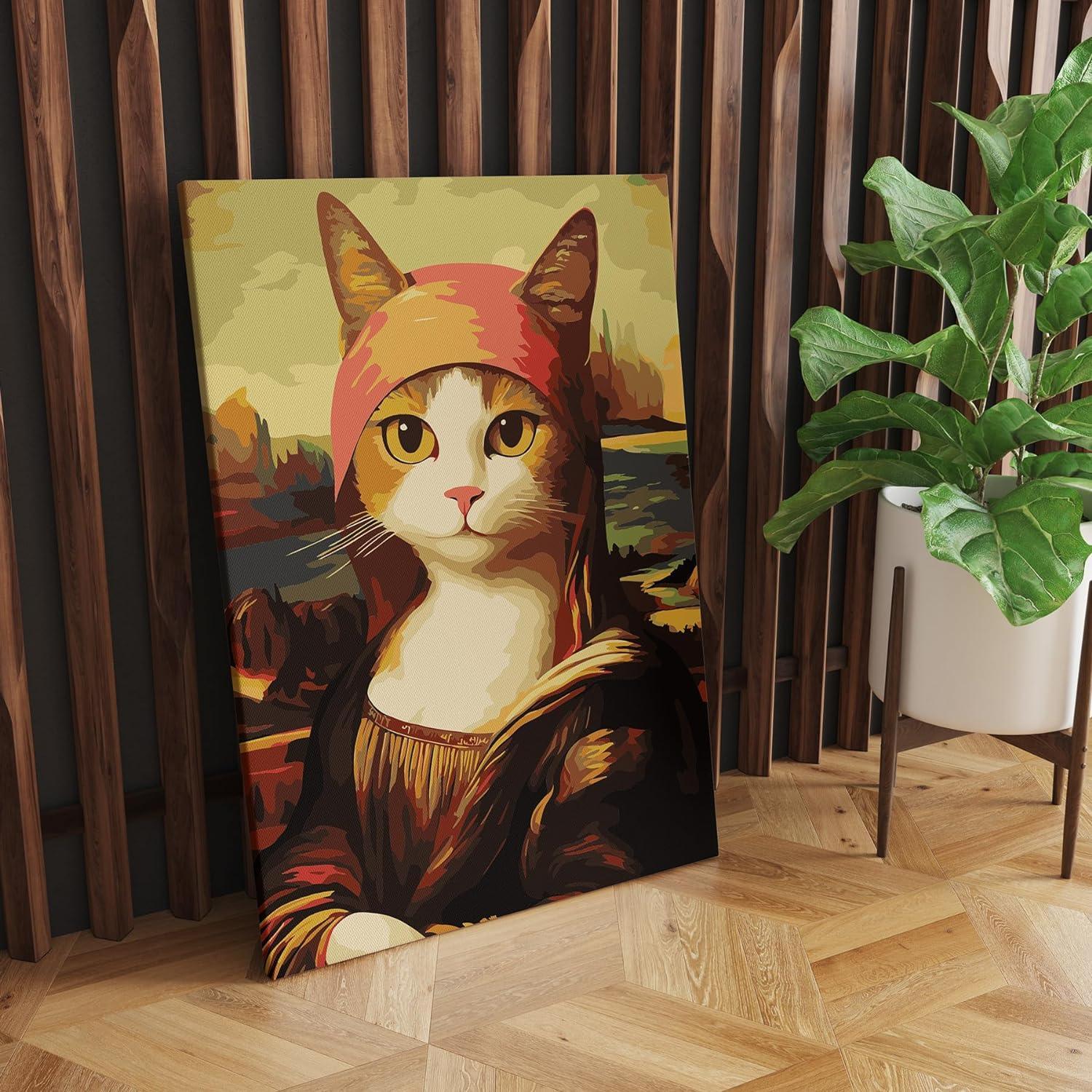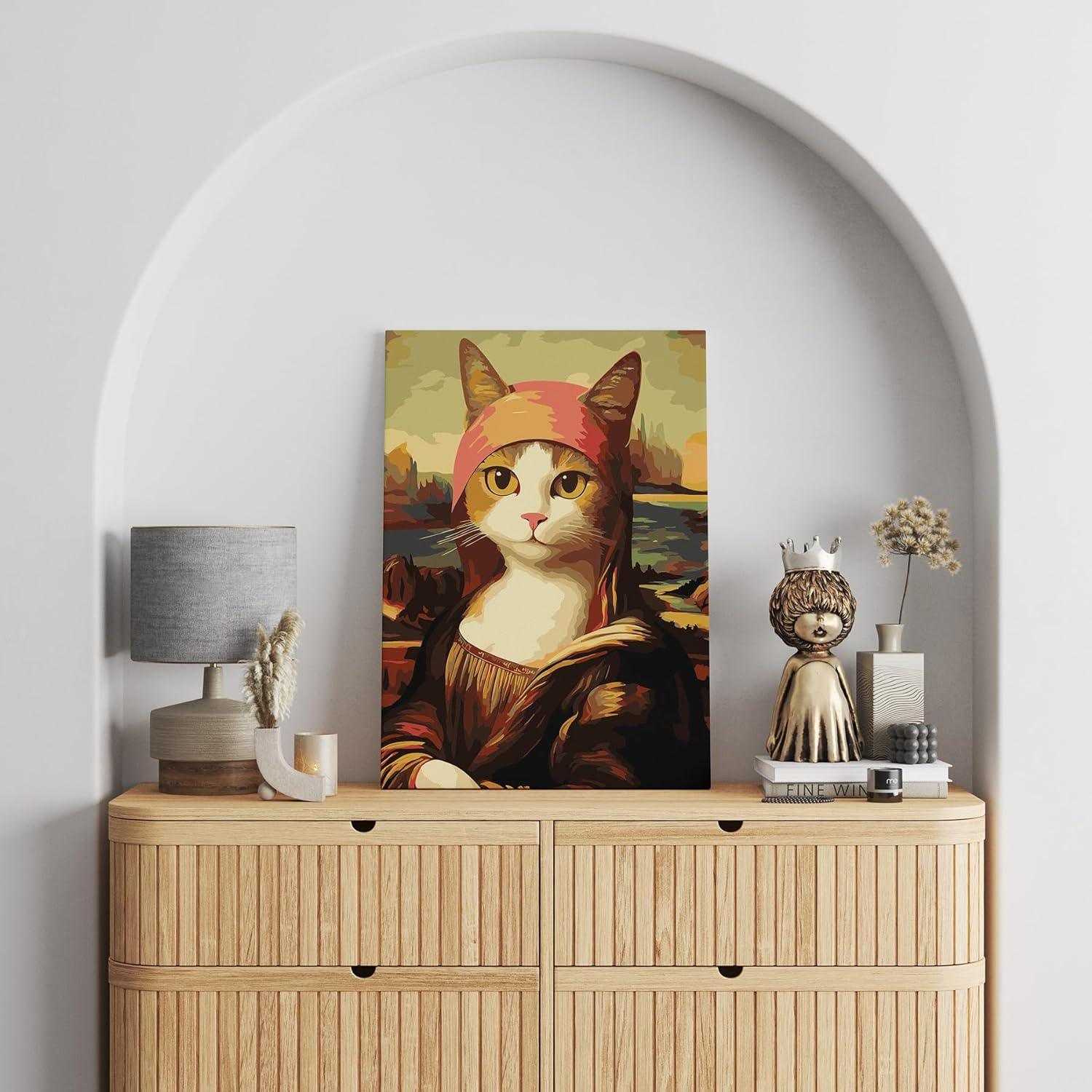 - Special Features: This unique artwork captures the essence of the classic Mona Lisa with a humorous, cat-themed depiction.