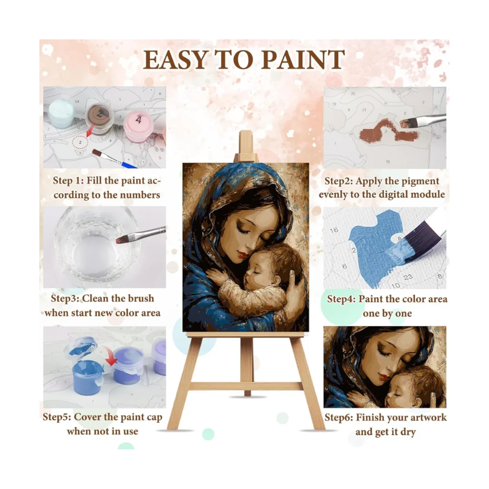 The Mother Child Paint By Numbers Acrylic Canvas Art DIY Kit is a practical option for anyone interested in DIY artwork. With its complete set of materials and guided design, it allows users to create a detailed canvas piece with ease. Suitable for home decor and creative activities, it offers both artistic asset and an engaging experience.