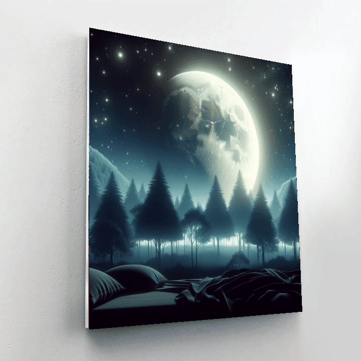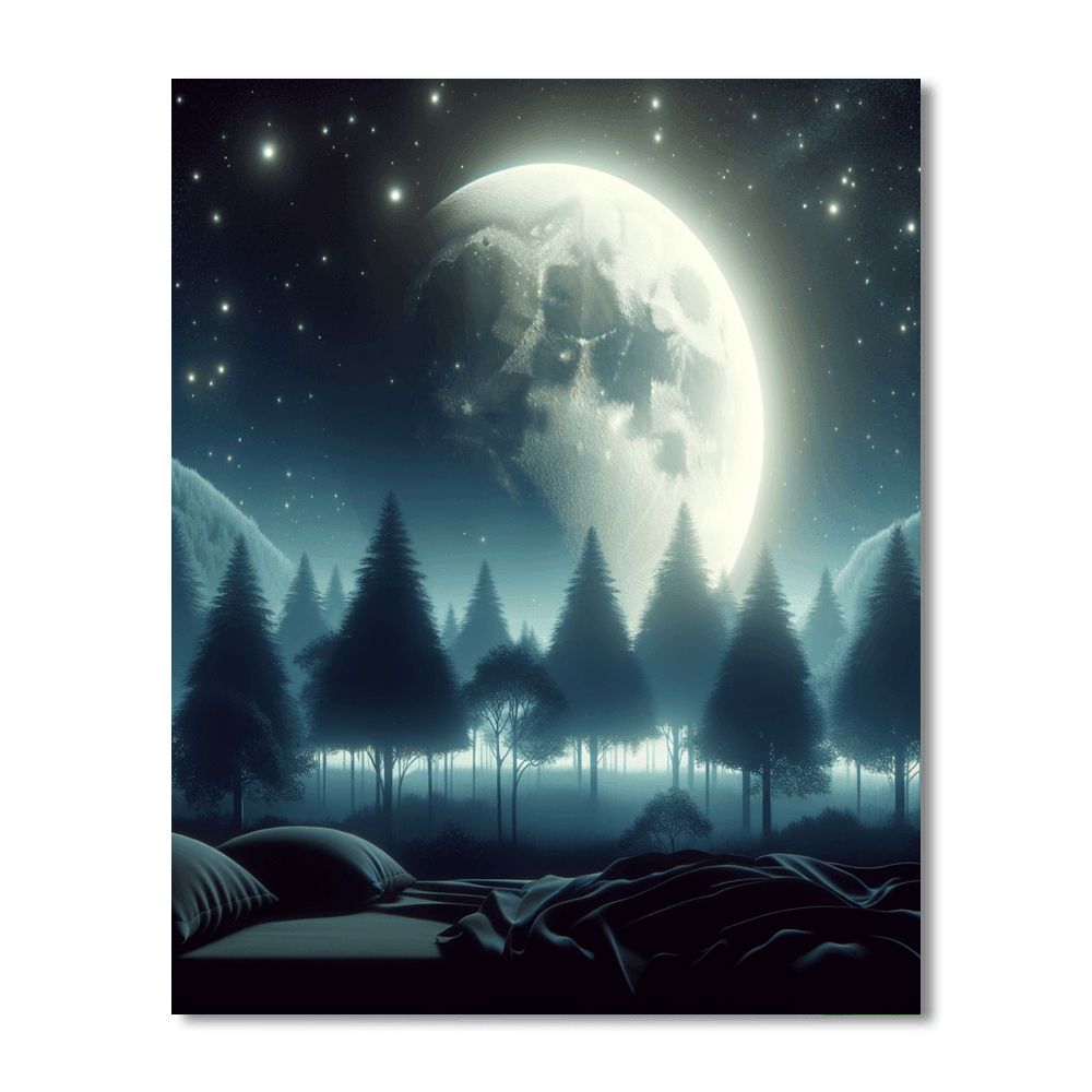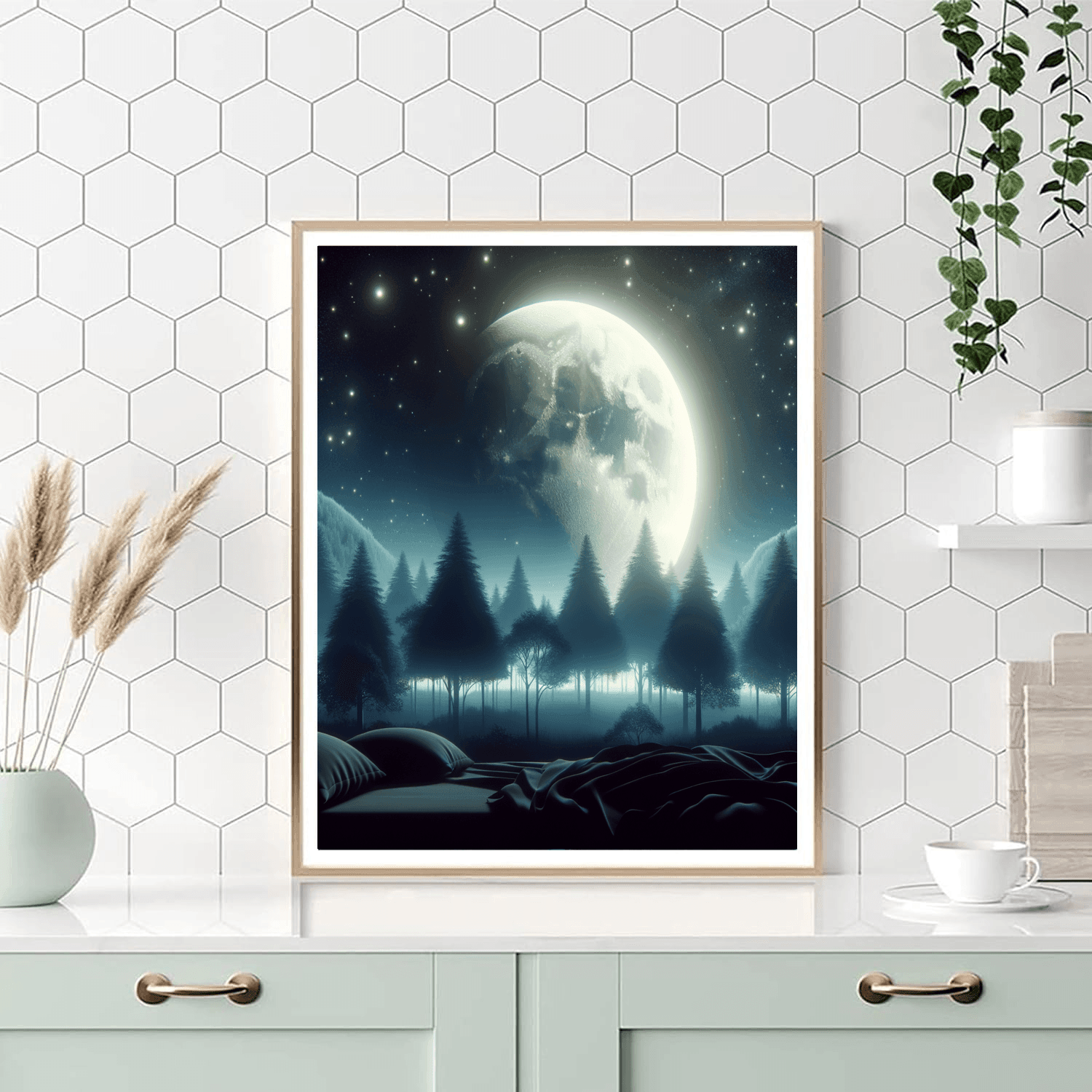 Experience the magic of mystic moonlight with this enchanting painting. The moons soft glow illuminates a tranquil landscape, casting a spell of mystery and allure. Perfect for creating a cozy and mystical ambiance in your bedroom or reading nook.