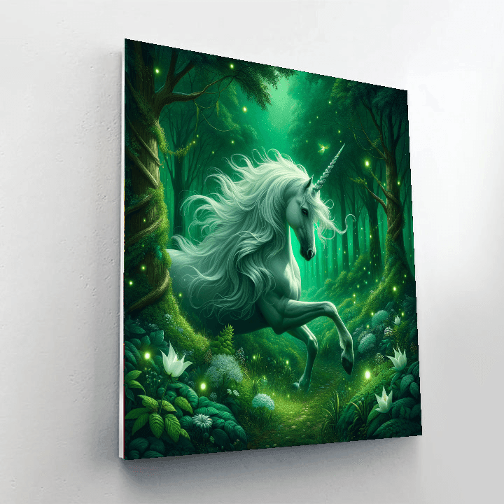 This enchanting piece features a majestic unicorn standing in a mystical forest. The unicorn, with its flowing mane and sparkling horn, is surrounded by lush greenery, magical flowers, and glowing fireflies. This artwork brings a touch of fantasy and wonder to any space, making it perfect for a childs bedroom or a whimsical living room. The detailed design ensures a captivating experience for both beginners and experienced artists.