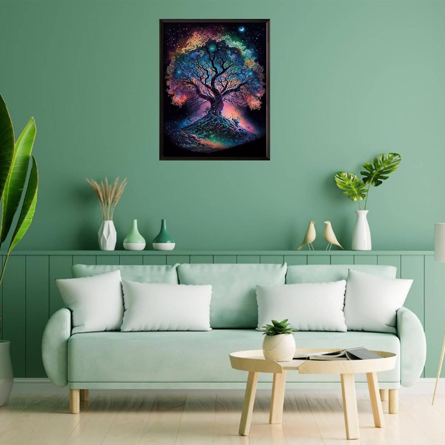 Create a radiant art piece with this Mystical Tree of Life Paint By Numbers Kit, which offers a splendid mix of colors and patterns celebrating the timeless symbol of the Tree of Life set against the night sky.