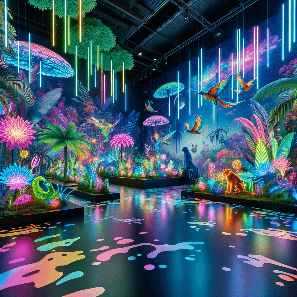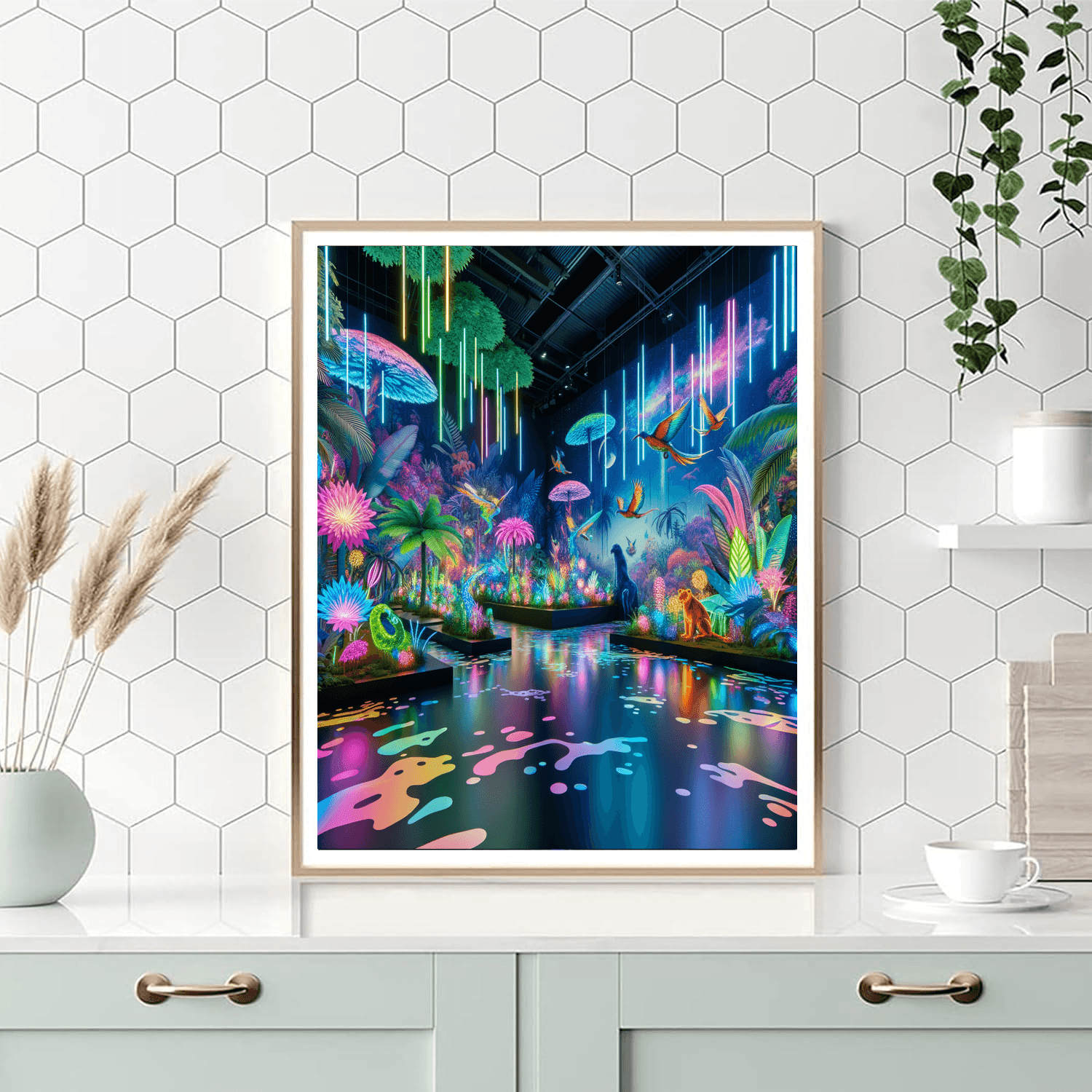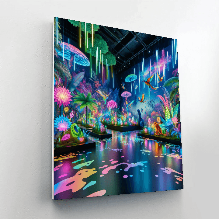 Transport yourself to a vibrant Neon Jungle Oasis with this electrifying artwork. The piece captures the essence of a futuristic jungle teeming with neon-colored plants and exotic creatures. The dynamic composition and bold colors create a lively and energetic atmosphere, full of excitement and adventure. Perfect for those who crave a pop of color and a touch of the exotic, this artwork will infuse any room with a burst of energy and style.