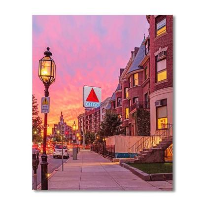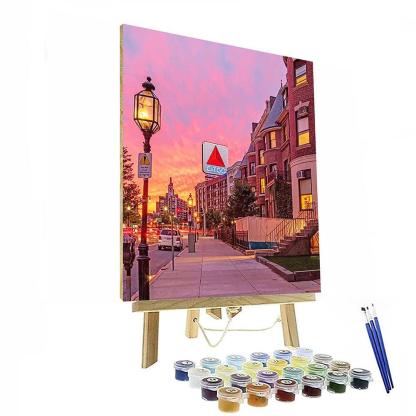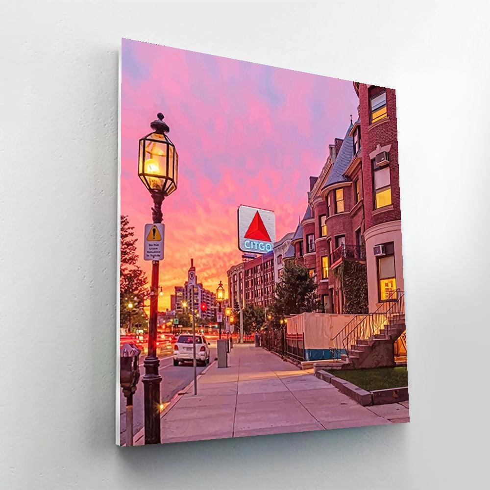 Capture the enchanting beauty of a Newbury Street Sunset in Boston, Massachusetts, with the captivating Newbury Street Sunset Boston Massachusetts Paint By Number Painting Set.