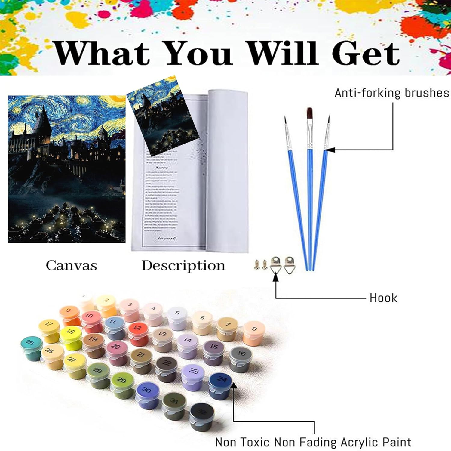 The Night Sky Castle Paint By Number Kit offers an escape into a realm of creativity and calm. Perfect for those who appreciate the nighttime landscapes and the charm of fairy-tale architecture, completing this painting will leave you with a sense of achievement and a mesmerizing piece of art to display.