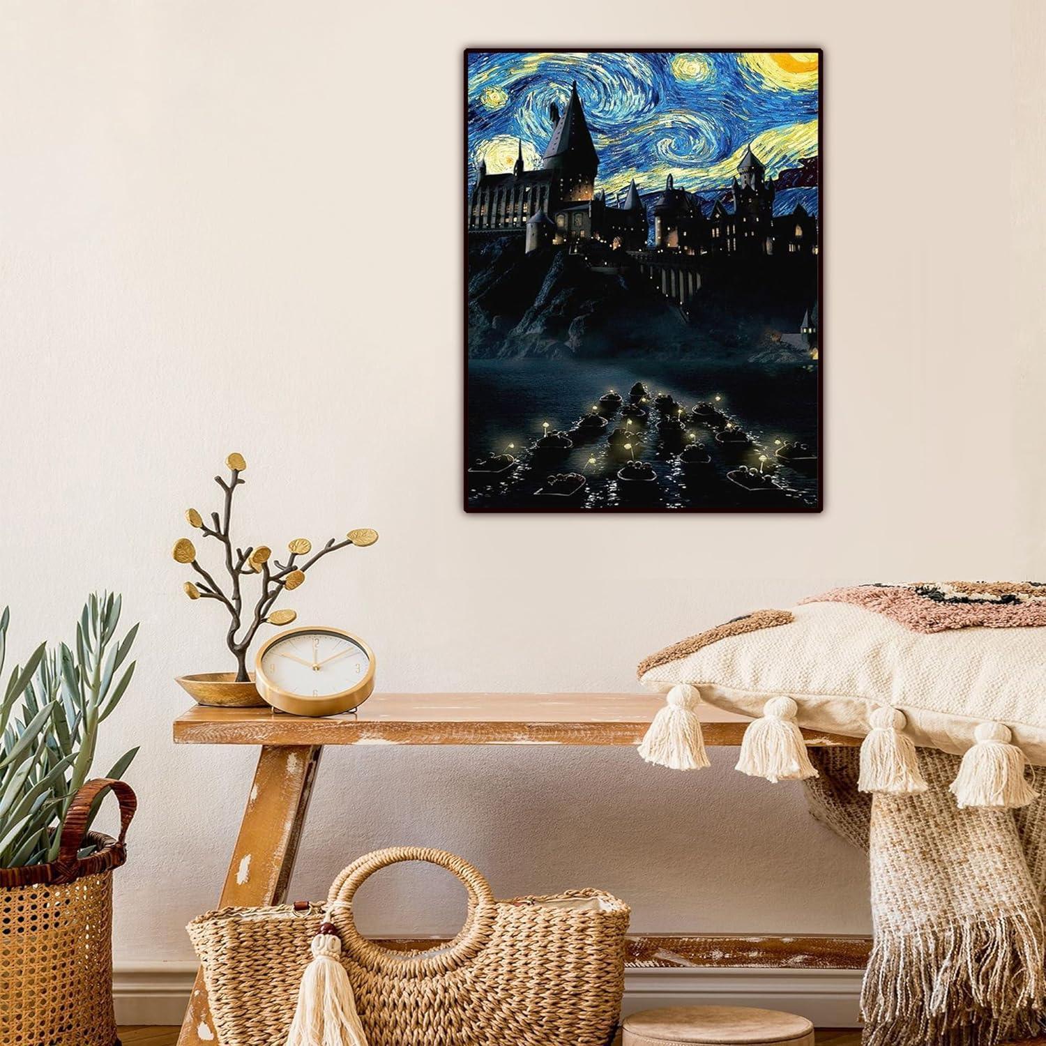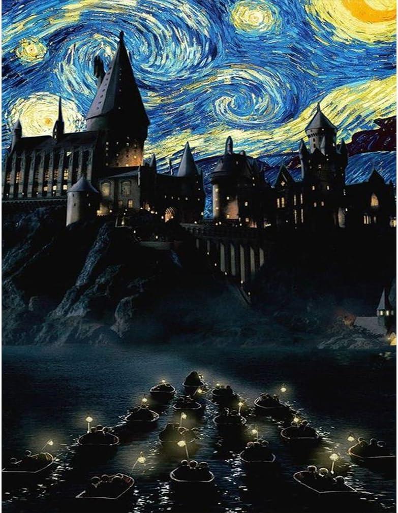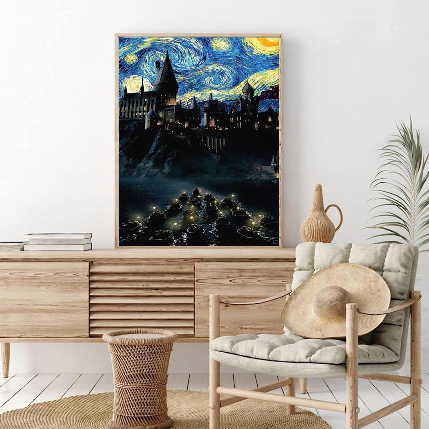Immerse yourself in the magical ambiance of the Night Sky Castle Paint By Number Kit. This captivating canvas transports you to an otherworldly scene where an enigmatic castle is silhouetted against a swirling, starry night sky, reminiscent of a classic masterpiece with a fantastical twist.