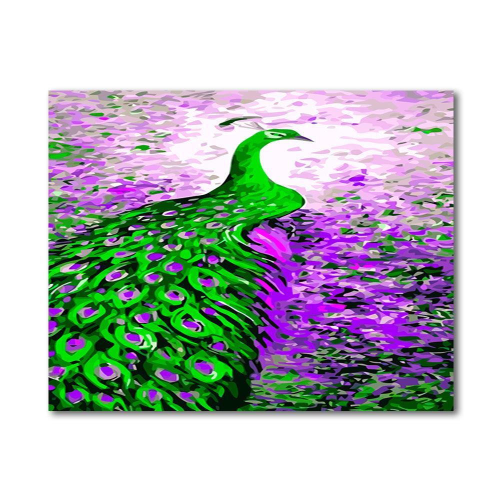Capture the vibrancy of the peacock in your painting as you finish this marvelous work of art. Bright a pop of color to your home with this green and purple peacock painting set.