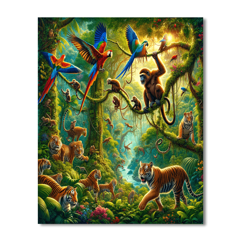 Meet the playful jungle animals in this lively scene of a tropical rainforest. Perfect for adding a touch of adventure to a childs bedroom or playroom.