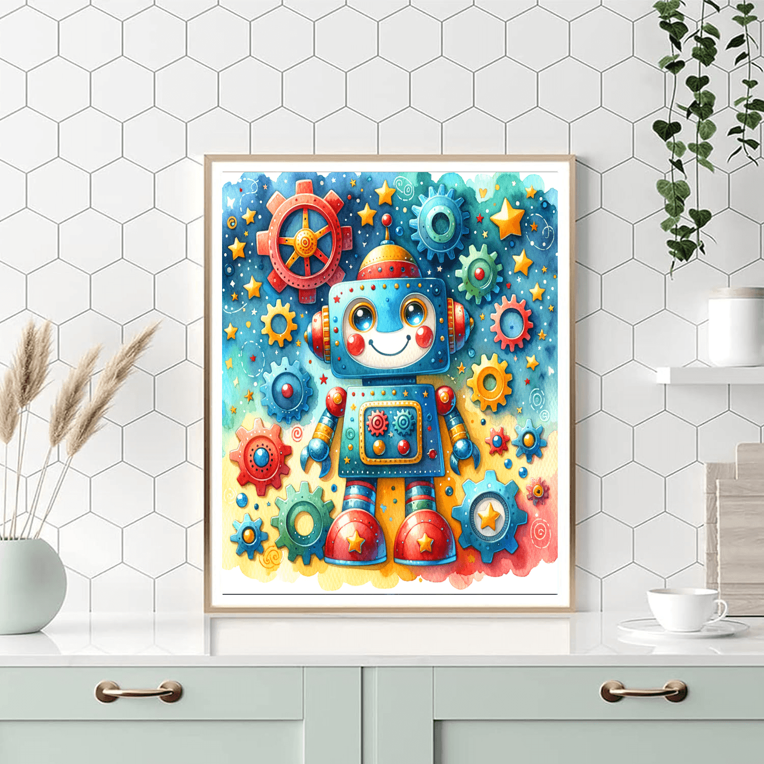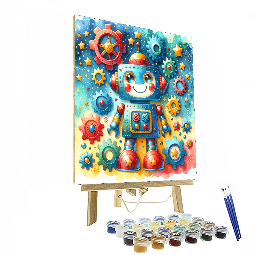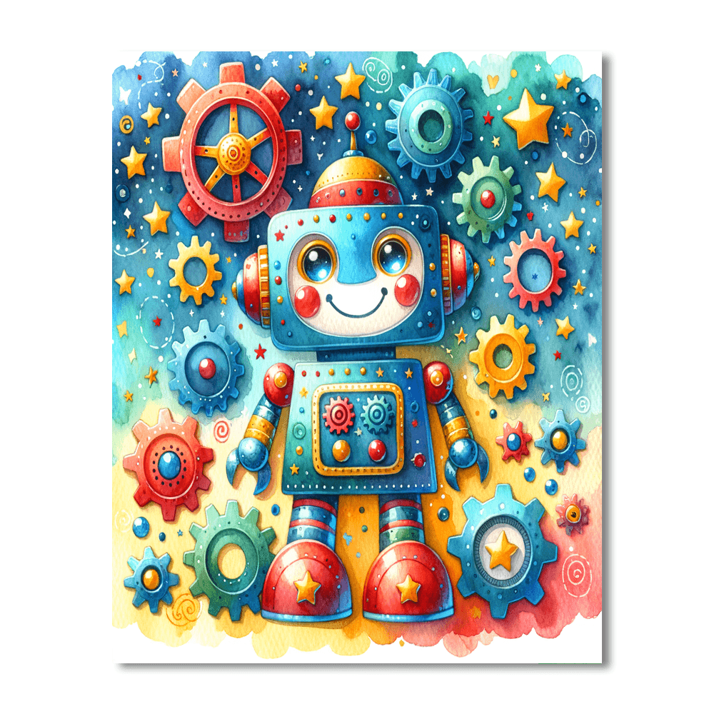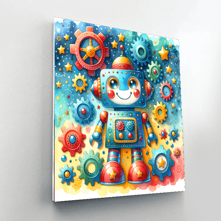 Ignite creativity with the Playful Robot! This fun product features a friendly robot exploring a colorful world filled with gears and stars. Designed for kids aged 5-14, this product encourages imaginative play and artistic expression while introducing children to the wonders of technology. The Playful Robot is perfect for decorating a childs room or play area, fostering a love for innovation and creativity. Watch your childs artistic skills grow as they bring this playful character to life!