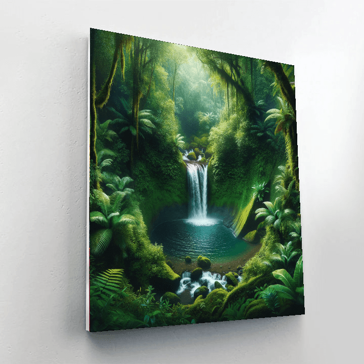 Immerse yourself in the lush greenery of a rainforest with this depiction of a waterfall oasis. The sound of water cascading down into a crystal-clear pool, surrounded by dense foliage, creates a sense of being in a tropical paradise. This product is ideal for those who love nature and the vibrant life of the rainforest, perfect for bringing a touch of the exotic to spaces like bathrooms, spas, or any area where a natural, calming influence is desired.