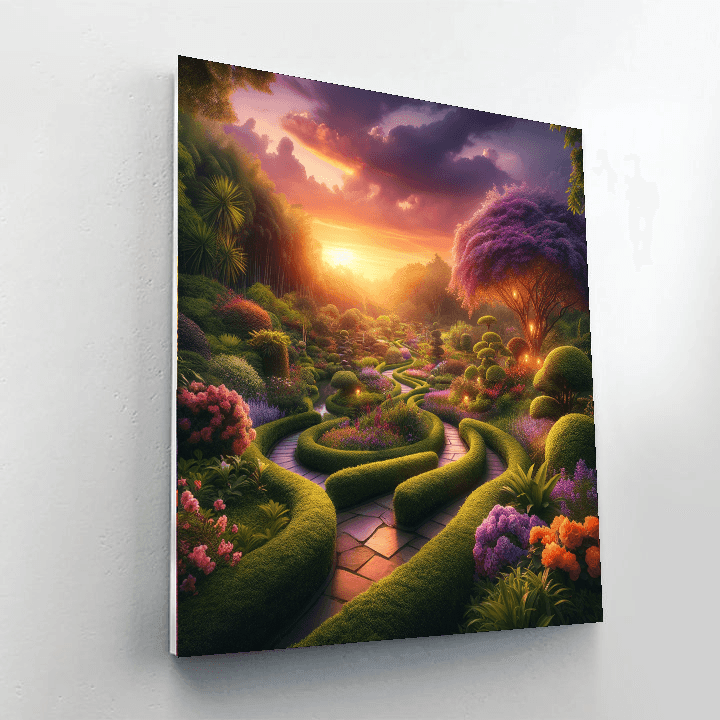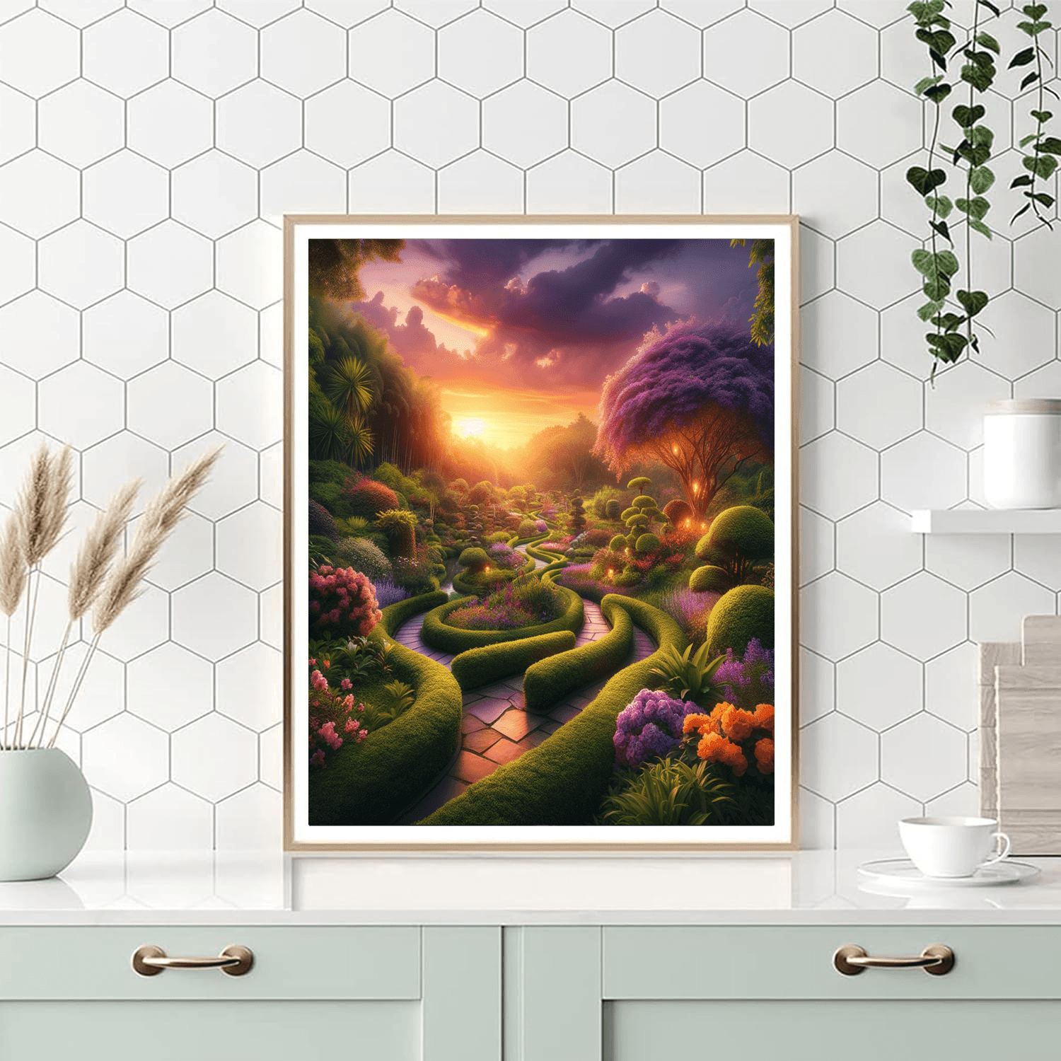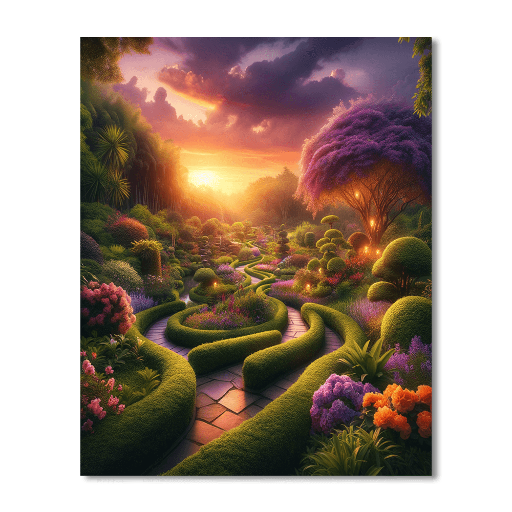 Add a touch of romance to your home with this enchanting garden path scene. Featuring a winding path through a blooming garden, this product is perfect for a living room or bedroom, bringing a sense of tranquility and beauty.