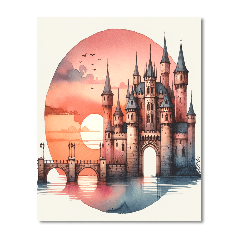 Step into a fairy tale with the Royal Castle. This kit features a majestic castle with tall towers and a drawbridge, set against a beautiful sunset. Perfect for kids who love stories of knights and princesses, this painting can be a charming addition to a childs bedroom or playroom, sparking their imagination and creativity.