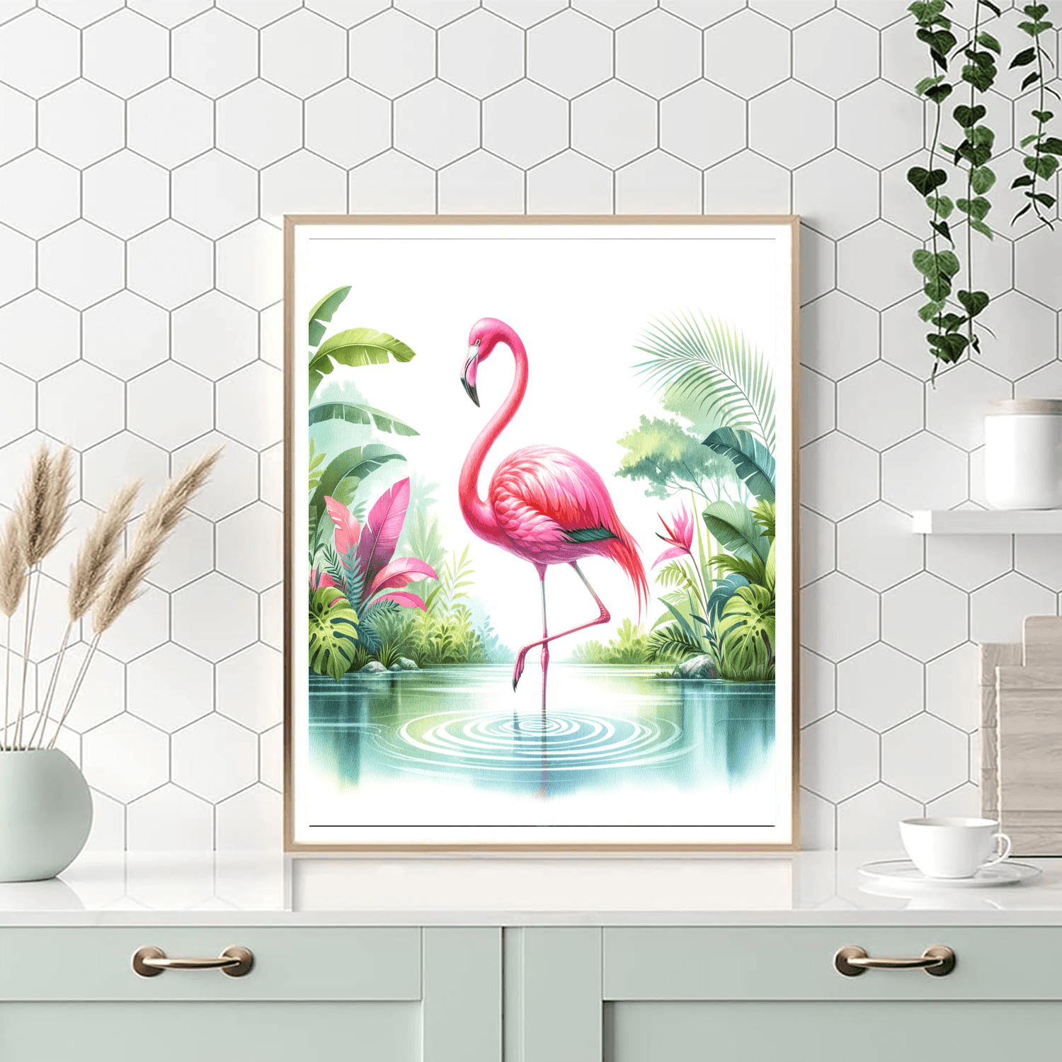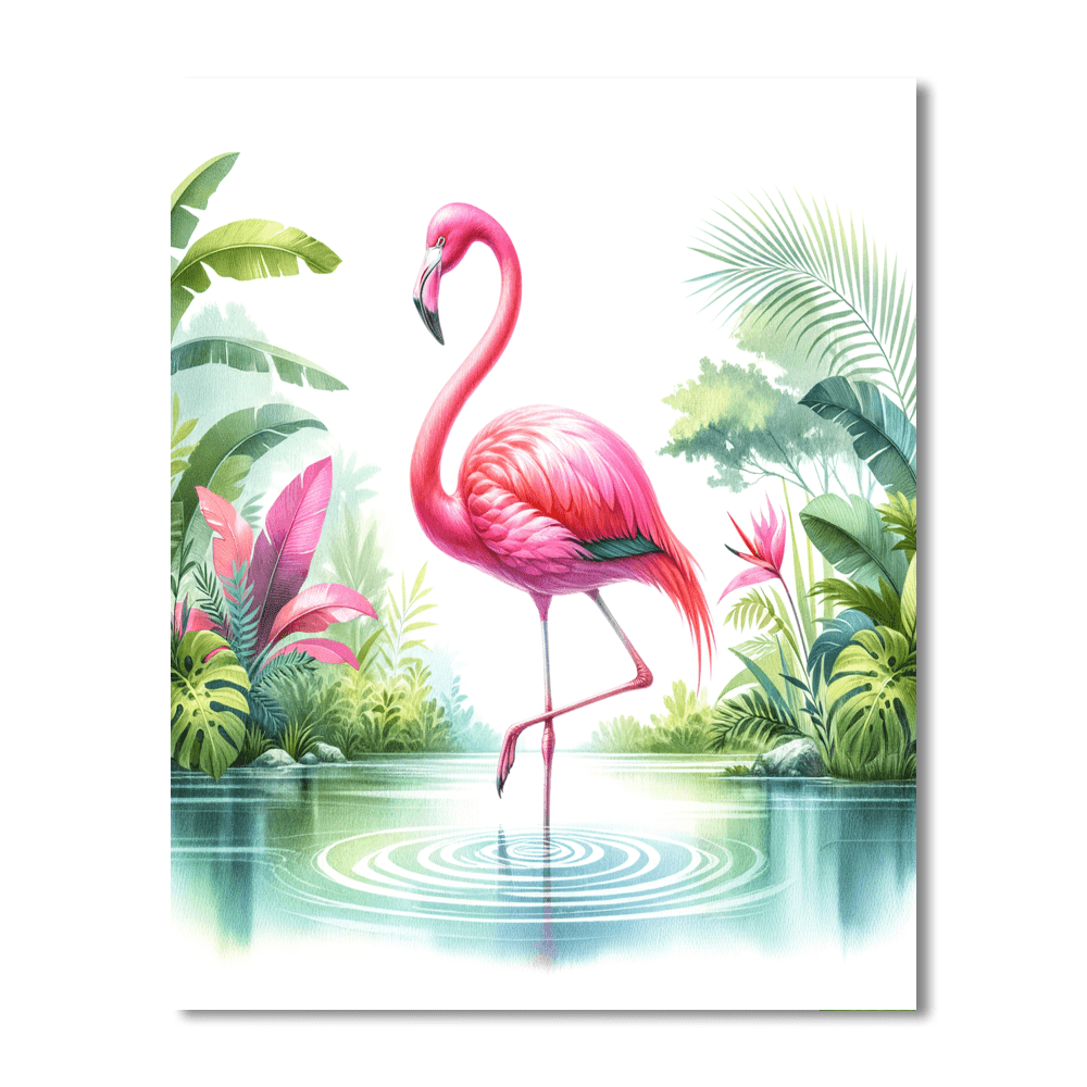 This vibrant product features a sassy flamingo standing elegantly on one leg by a tranquil pond. Kids will enjoy filling in the colors while learning about this unique bird and its habitat. This design encourages creativity and an appreciation for wildlife. The completed artwork can be displayed in a childs bedroom or a fun play area, adding a splash of color and personality to their space.