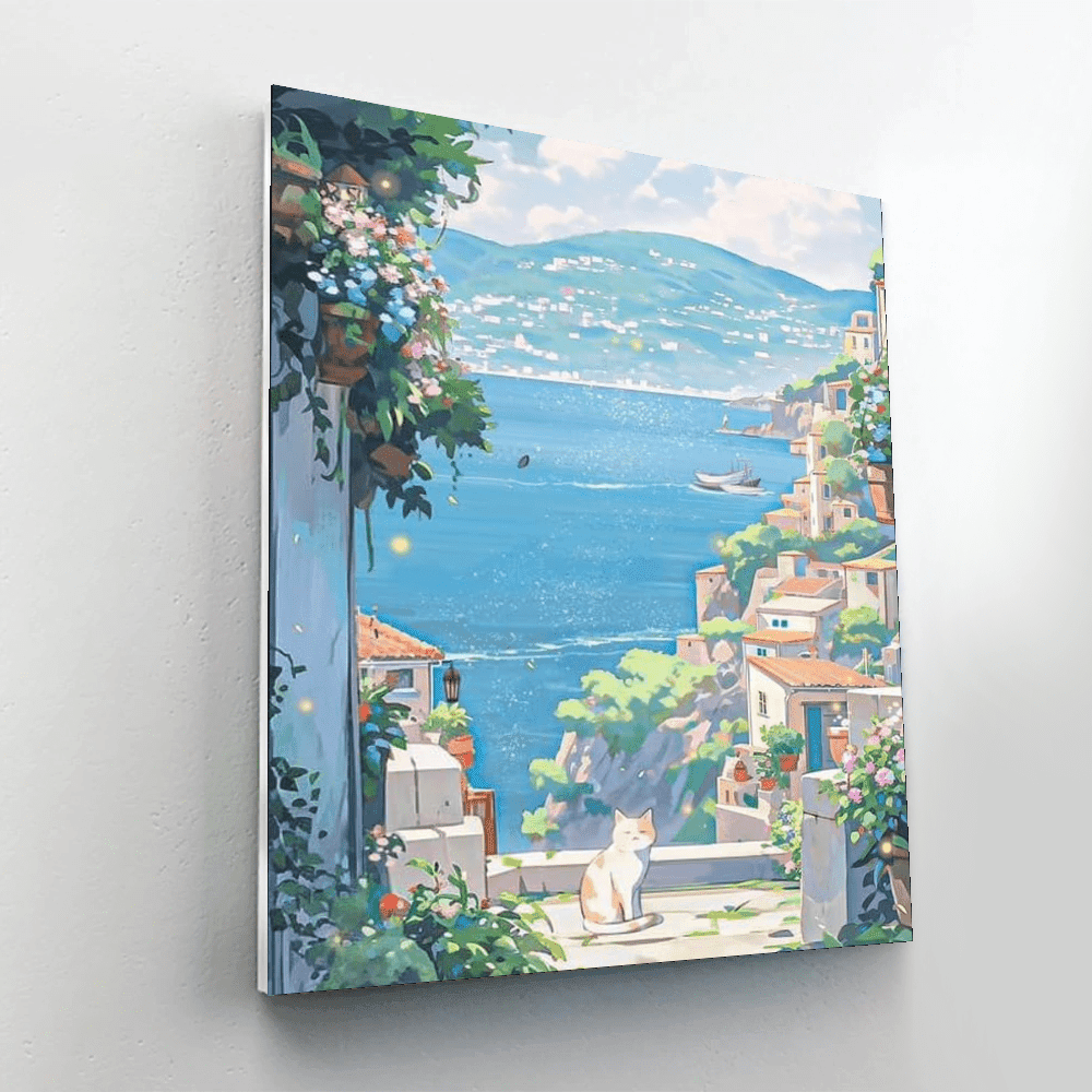 This canvas print captures the essence of a coastal escape, where the serenity of a quaint village meets the azure embrace of the sea. Framed by lush foliage and a clear sky, it's a view that beckons a sense of peacefulness and natural beauty. This scenery art beginner painting kit includes a high-quality canvas, paintbrushes, and paints, allowing you to capture the tranquil and stunning landscapes of nature.
