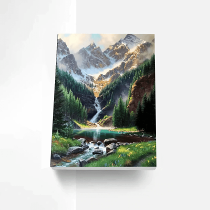 Pattern: Each painting showcases a distinct natural setting, from peaceful mountain ranges to serene waterfalls and coastal sunsets.