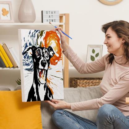 Channel a bold artistic spirit with the Screaming Dog Paint By Number Kit, where a vibrant canine portrait meets the dramatic intensity of classic art styles. This kit invites you to create a powerful depiction of emotion and energy as you paint a dynamic canine against an abstract, lively background.