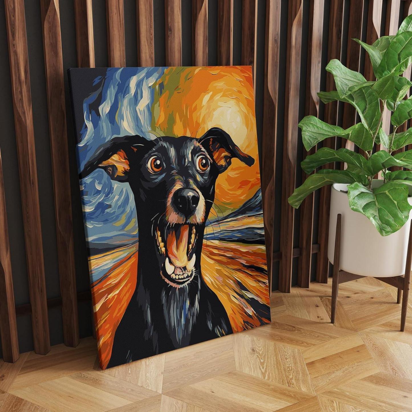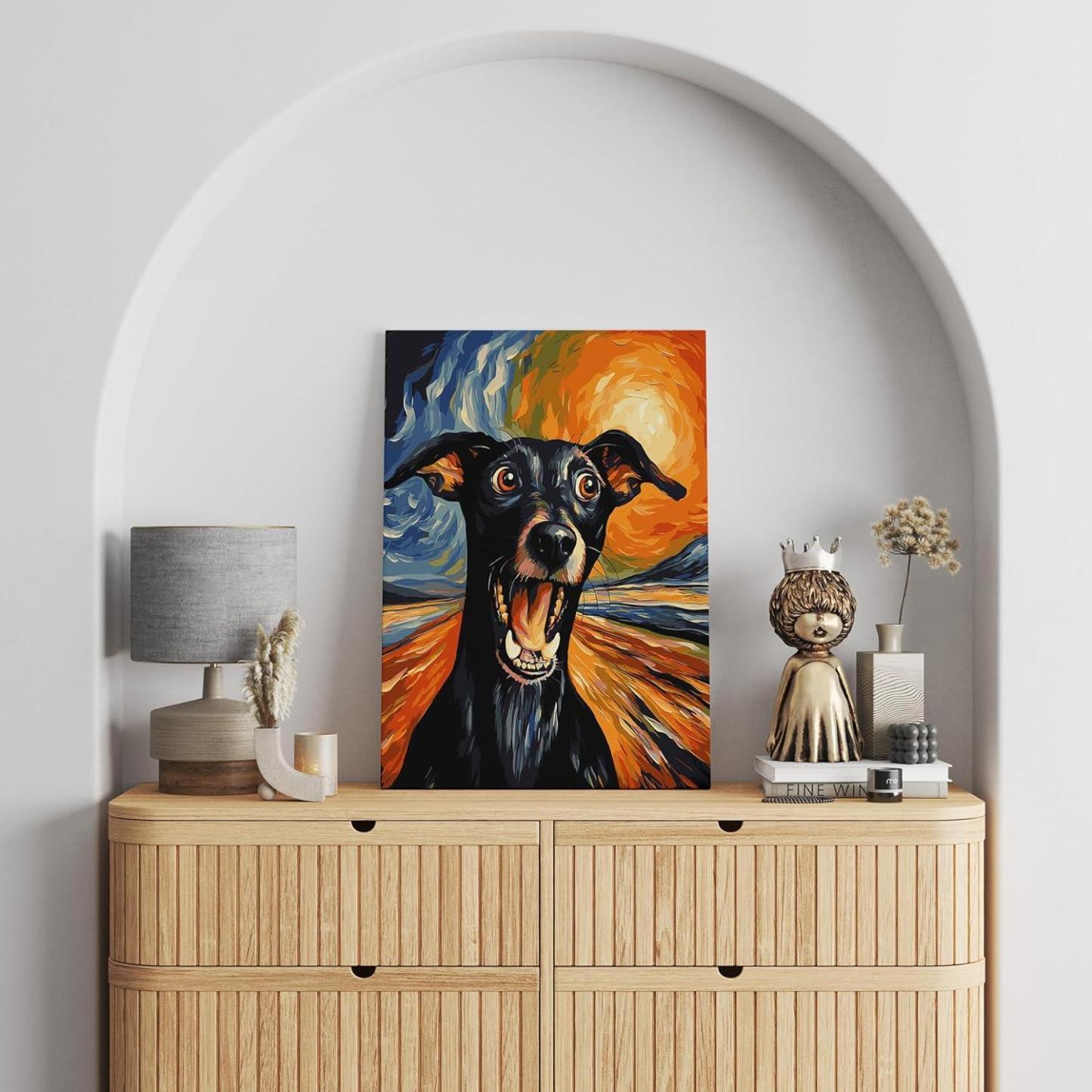 Shape: The vertical orientation canvas is ideal for the portrait-style depiction of the spirited dog.