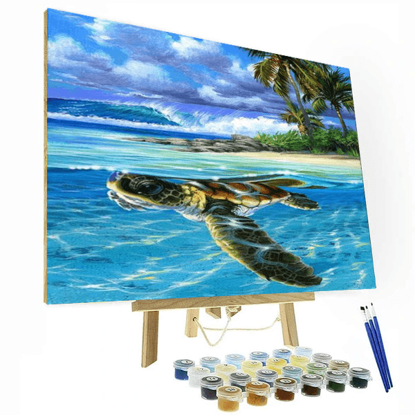 Turtles are the cutest creatures ever, and when you see them at the beach, you count that as a good day. Bring our little friend in your living room with this Sea Turtle painting. Immerse yourself back to your tropical vacation.
