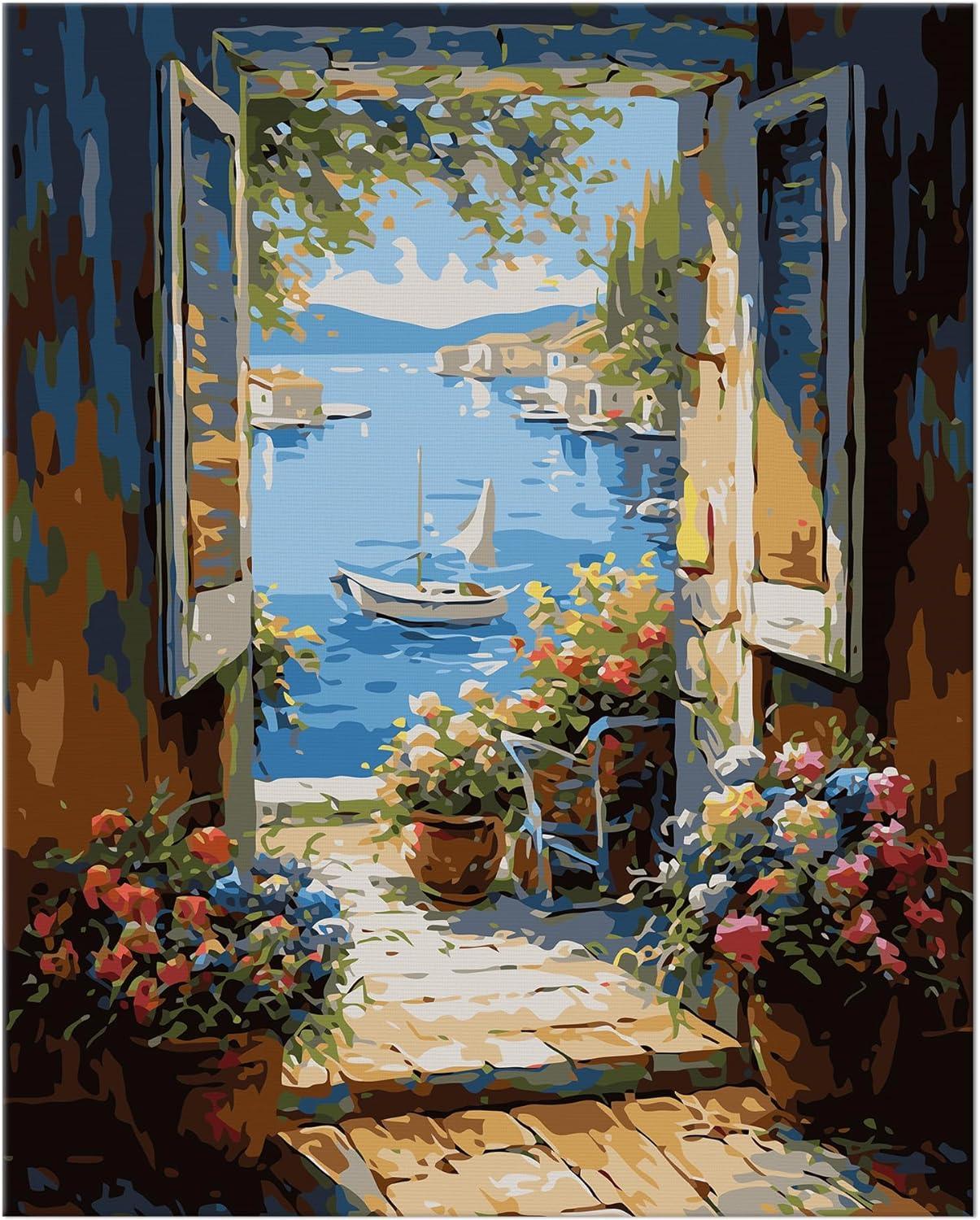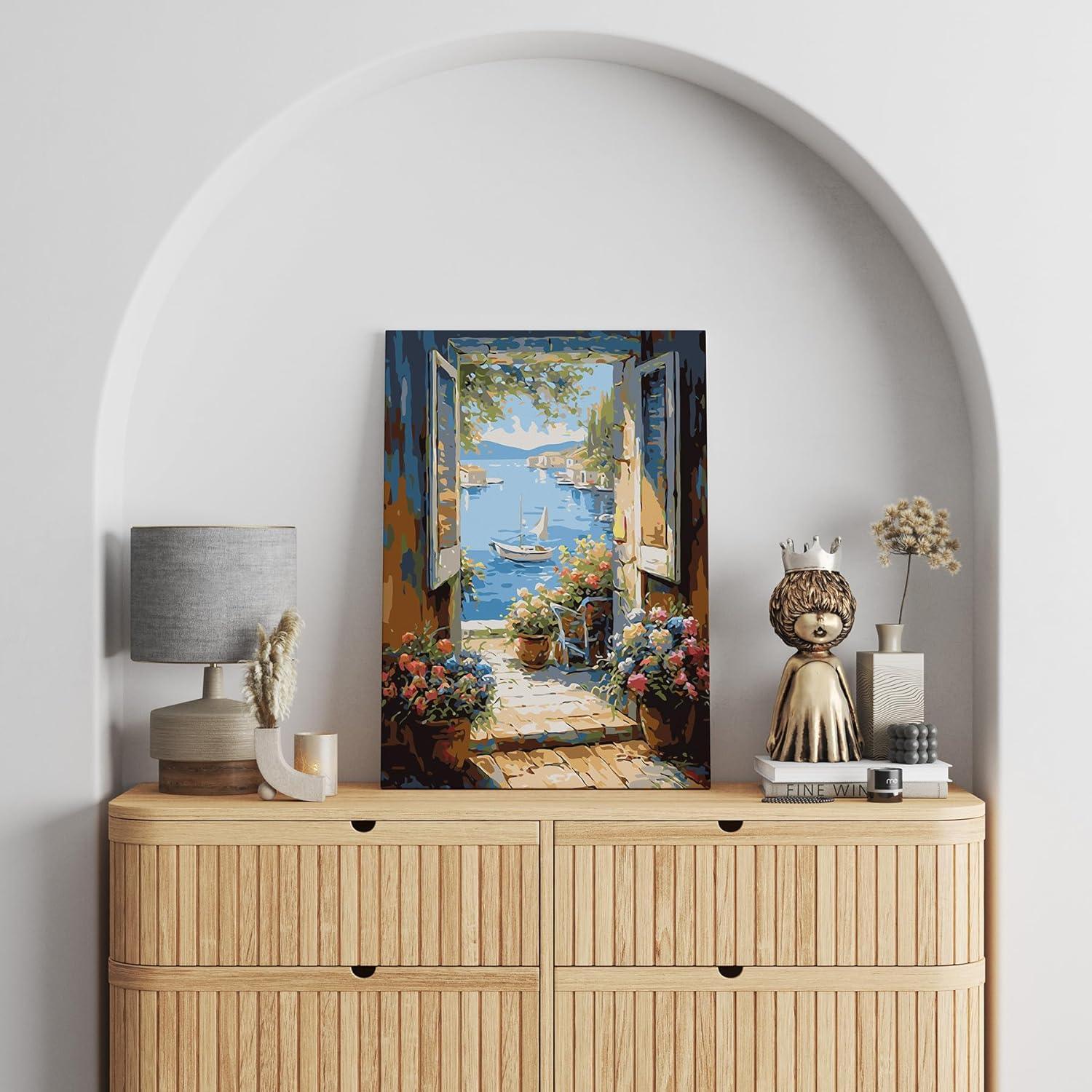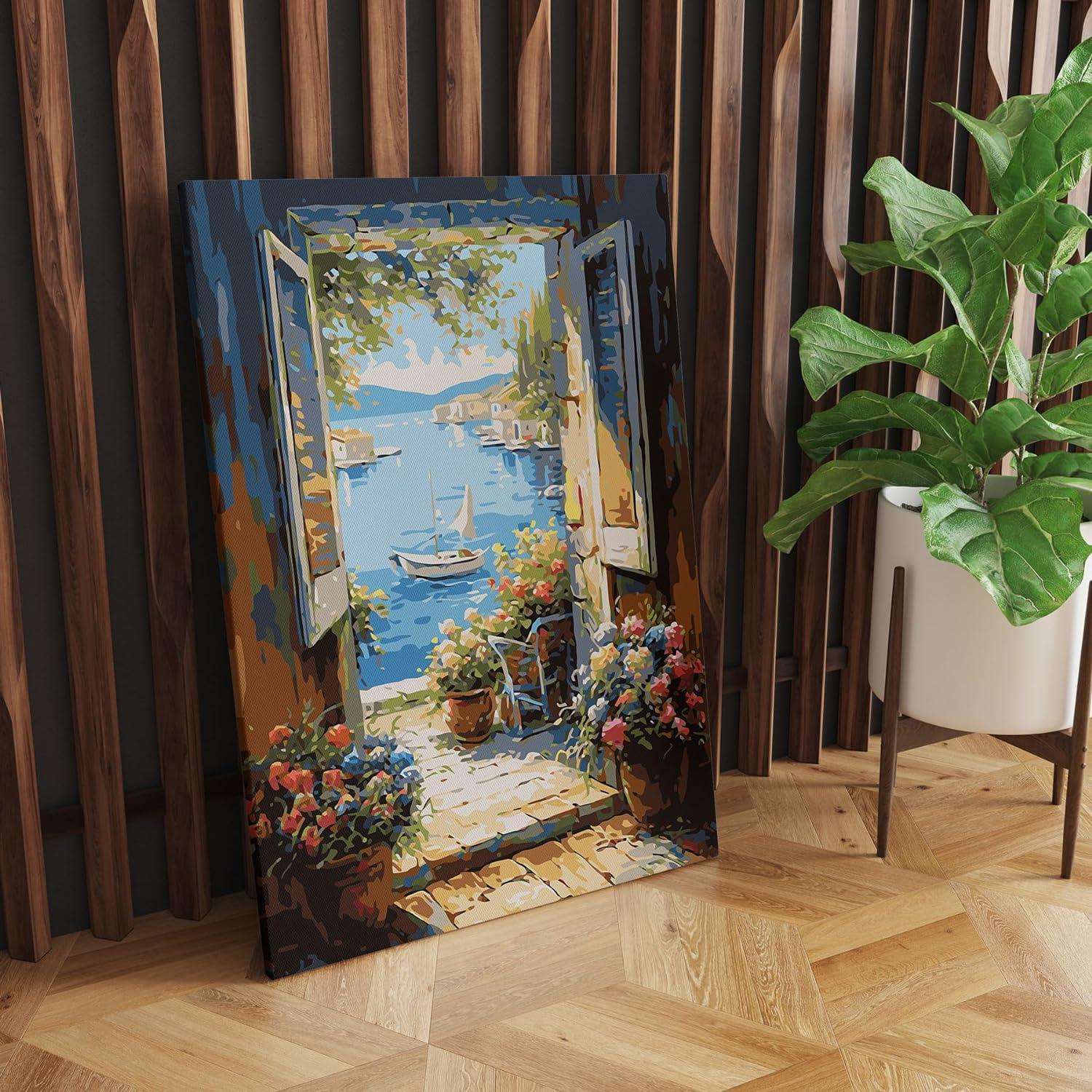 - Shape: The canvas has a vertical orientation, ideal for the portrayal of the picturesque doorway leading to the sea.