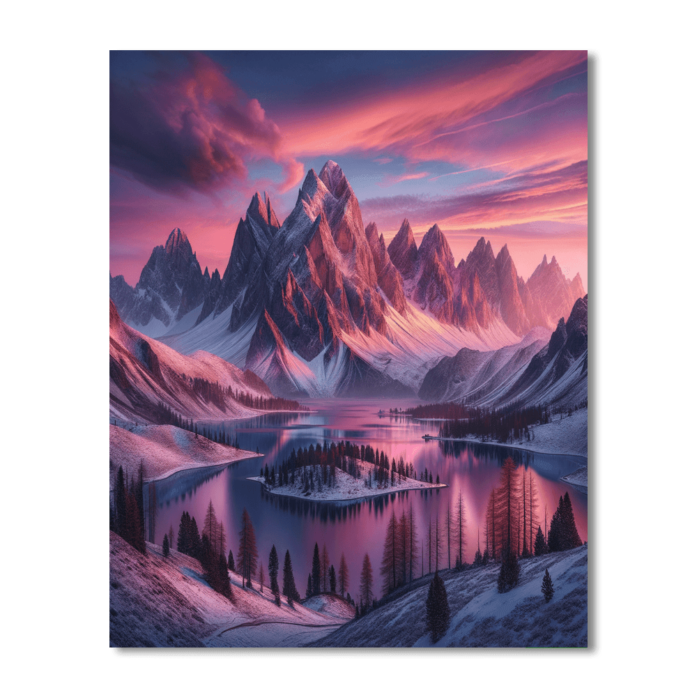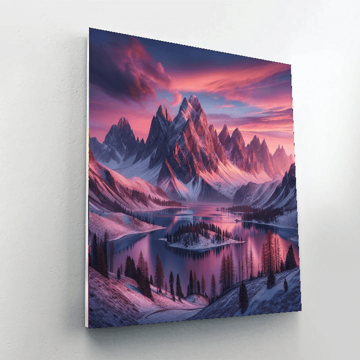 Capture the tranquil essence of a mountainous landscape at dusk with the Serene Alpine Twilight. This piece invites you to immerse yourself in the serene beauty of towering alpine peaks bathed in the soft glow of a setting sun. The shadows cast by the mountains create a dramatic yet peaceful scene, perfect for enhancing the ambiance of any living room or study. The subtle interplay of colors reflects the peaceful end of the day, making it an ideal relaxation backdrop after a long day.