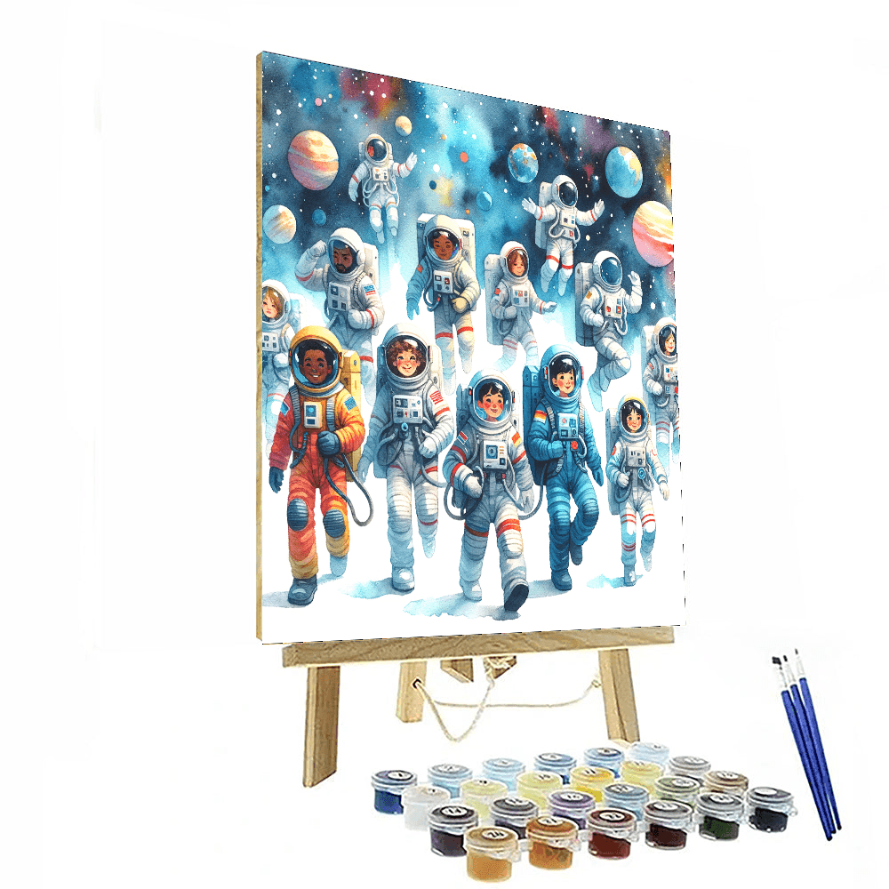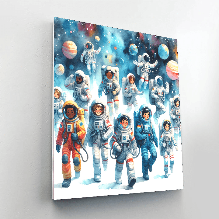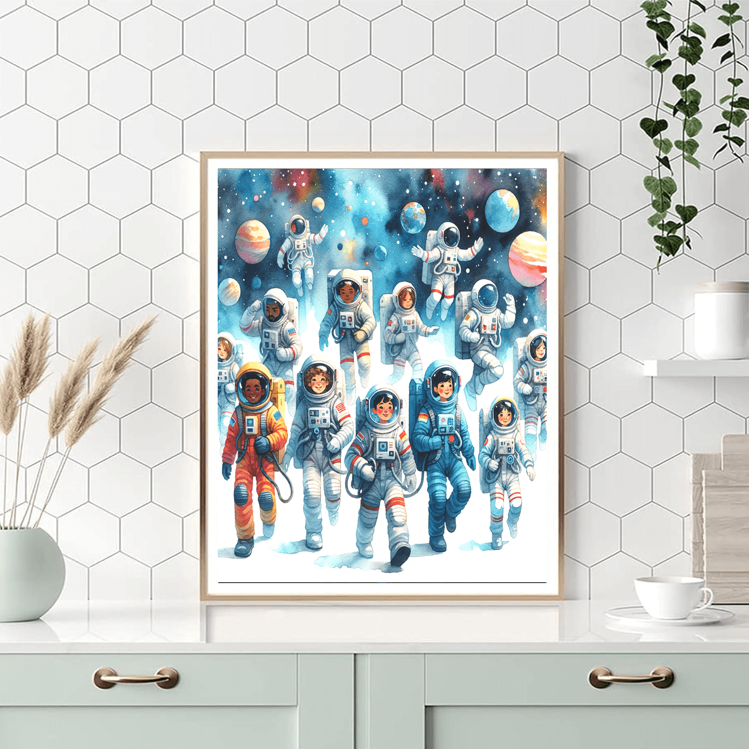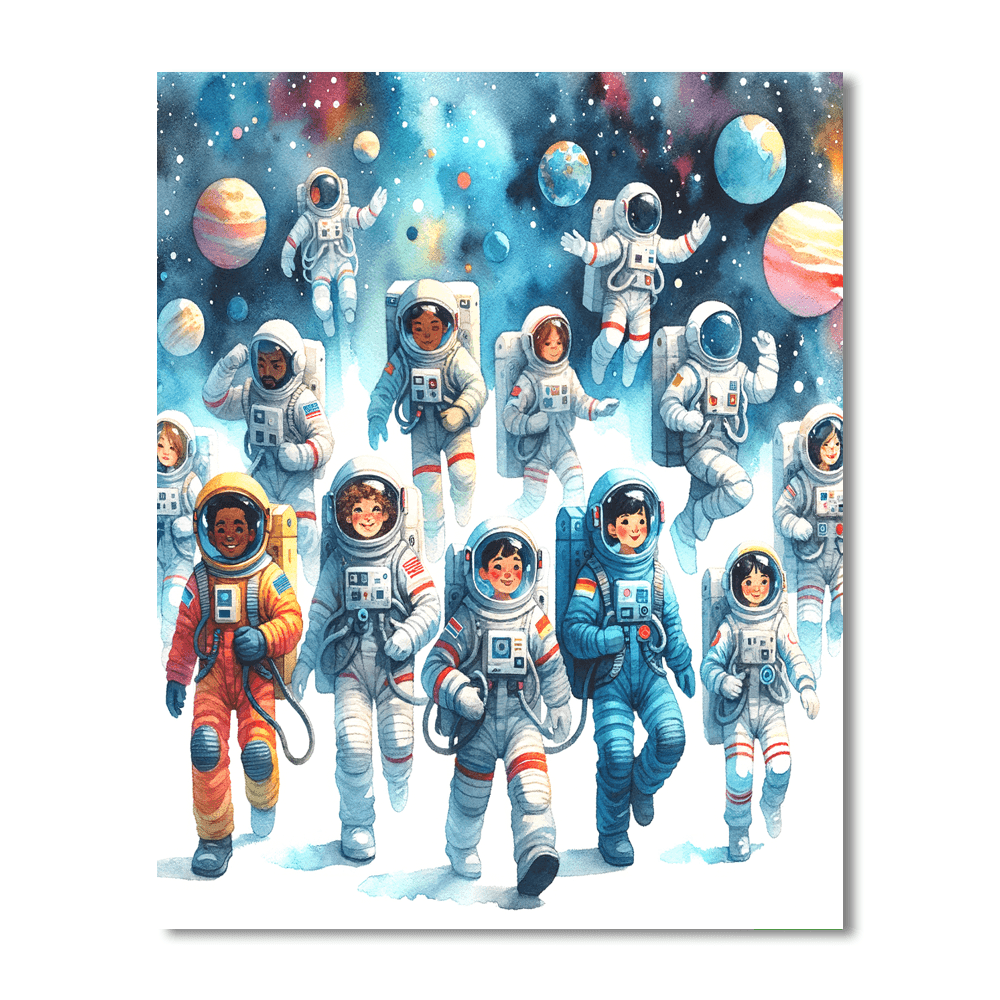 Embark on an intergalactic journey with the Space Explorers Adventure painting. This educational and fun artwork depicts astronauts exploring the cosmos, inspiring curiosity and a love for science in young children. Perfect for kids aged 7-12 who dream of exploring the stars.