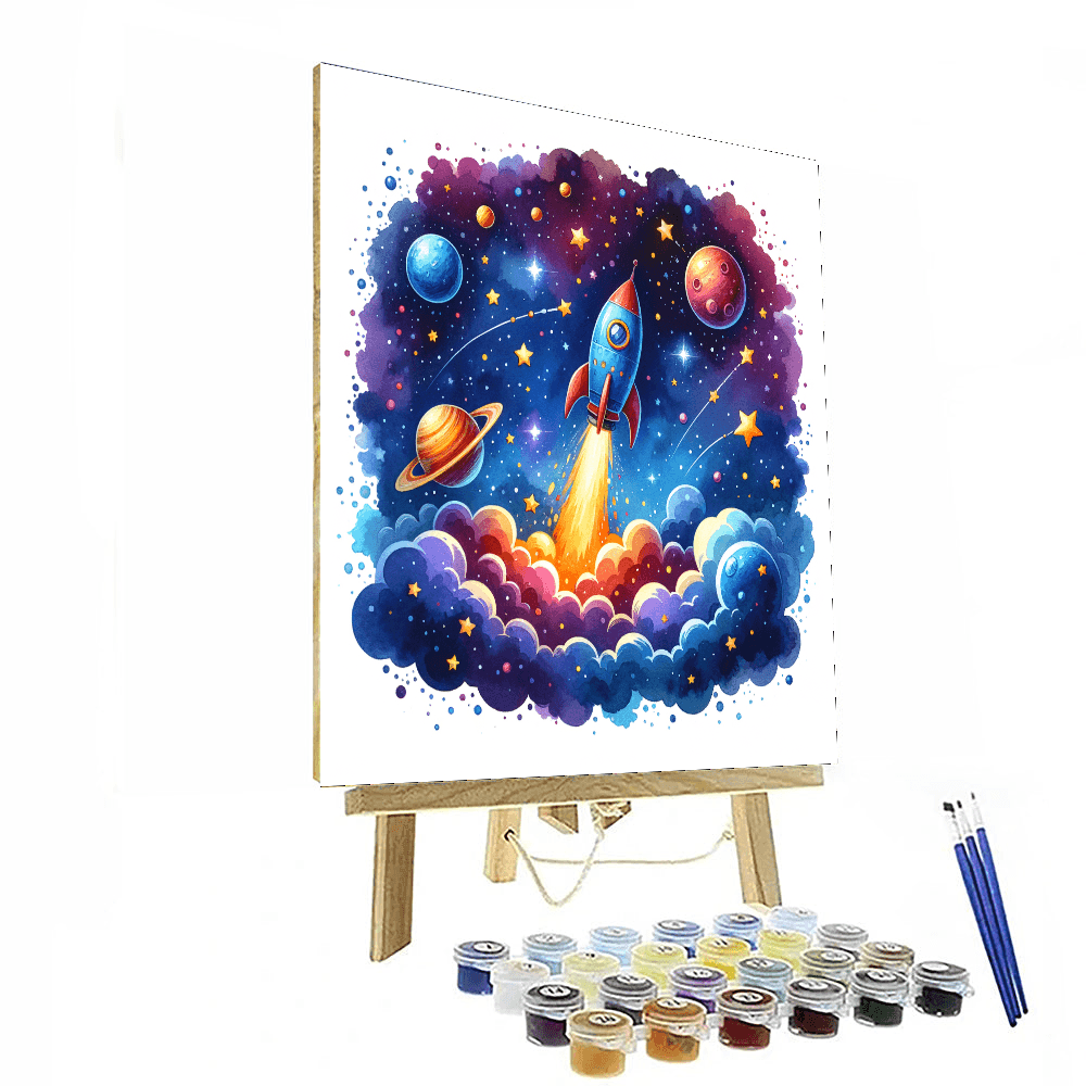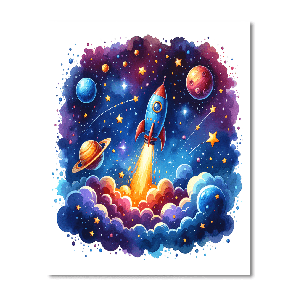 Blast off into space with this kit featuring a colorful rocket ship soaring through the stars and planets. This kit is perfect for kids who love space and can be a great addition to a science-themed room or play area.