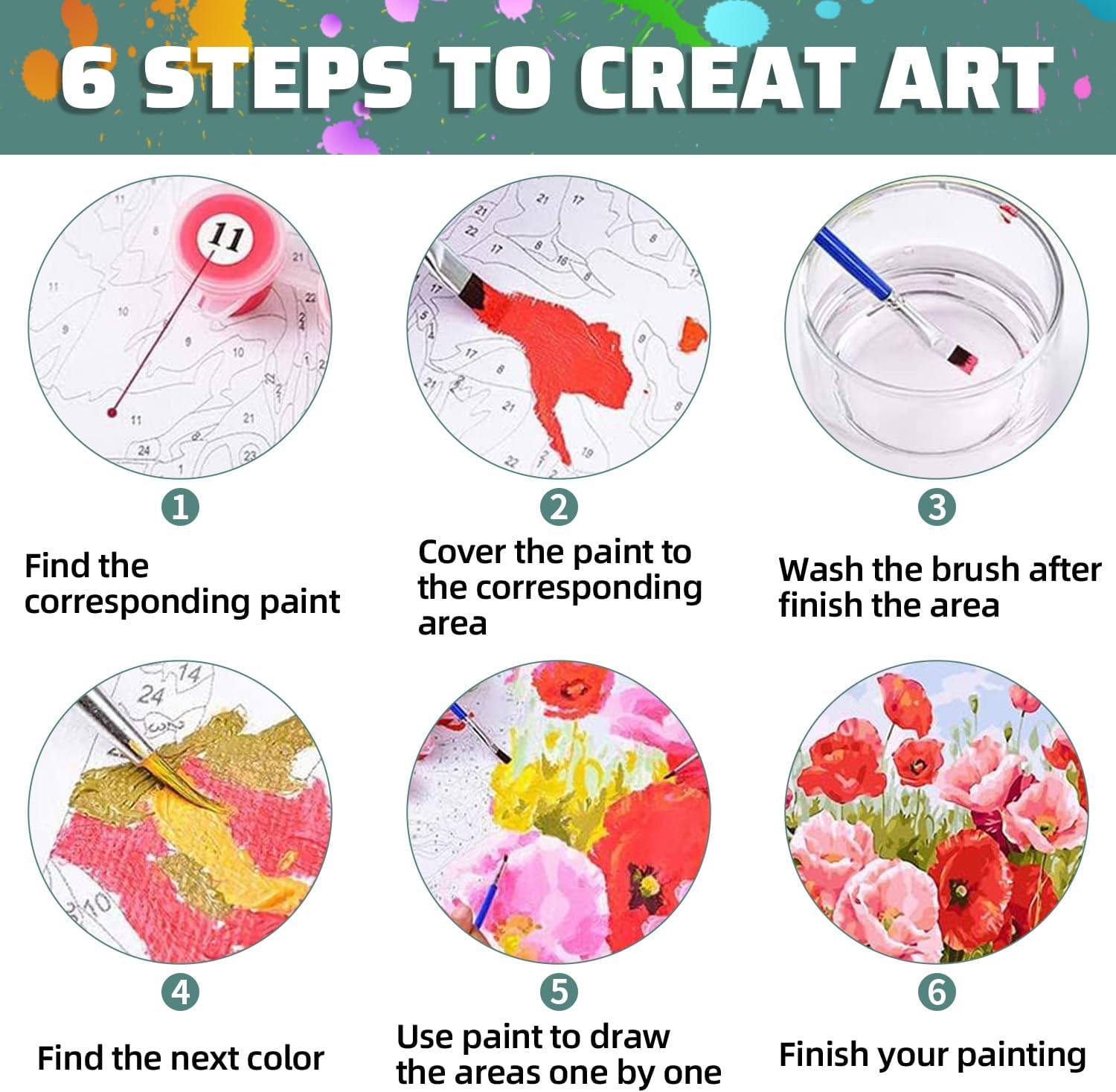 Technical Specifications: The kit includes a numbered canvas, corresponding acrylic paint set, and a variety of brushes for precision painting.