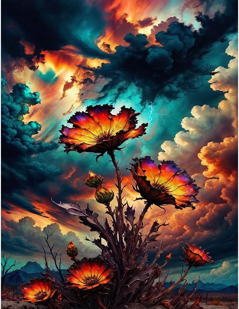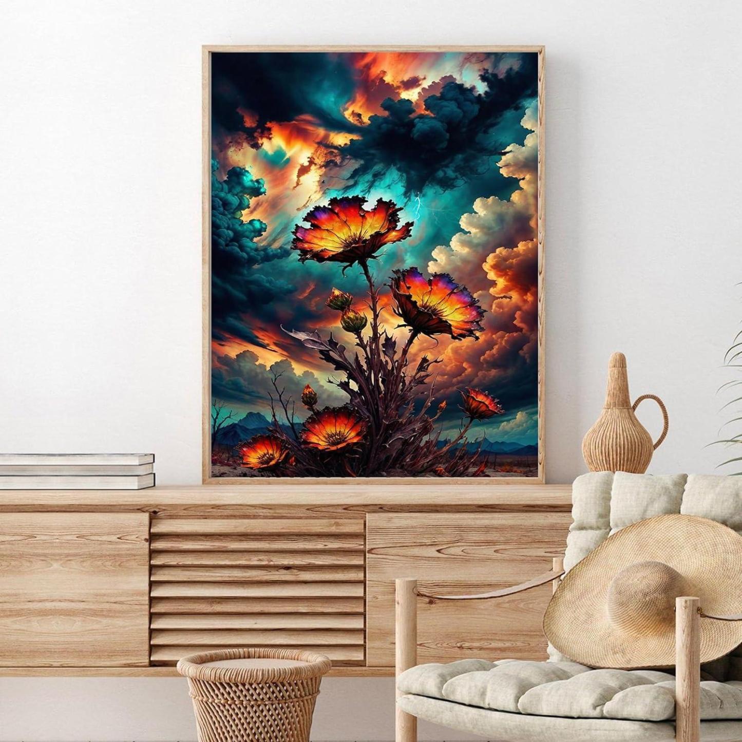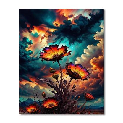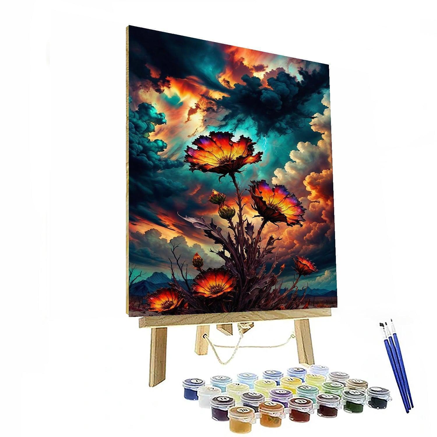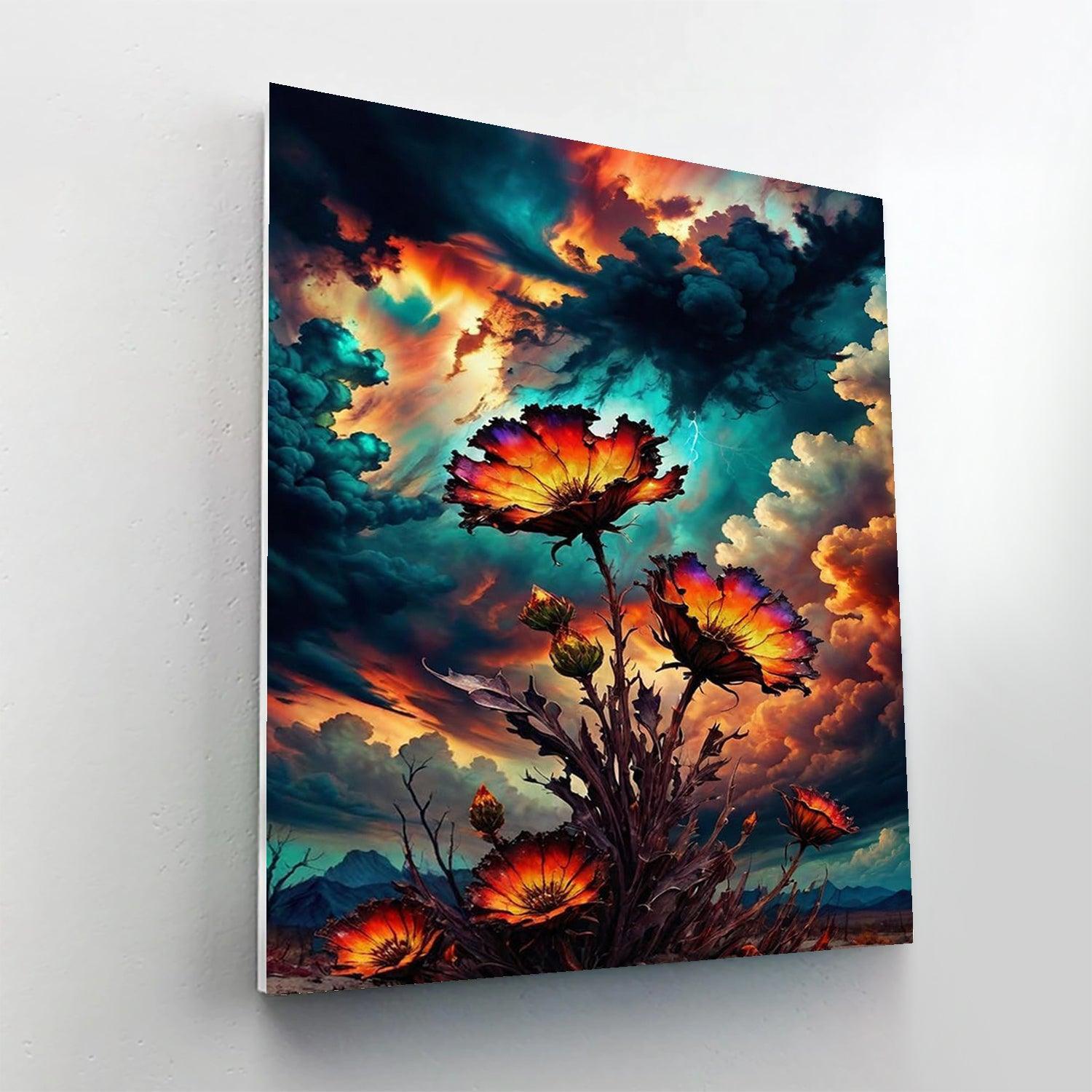 Enter a world of dramatic skies and vivid florals with the Stormy Flora Paint By Number Kit. This stirring canvas blends the untamed beauty of a tempestuous sky with the fiery hues of wild blossoms, offering an artistic challenge that captures the intensity of nature's contrasts.