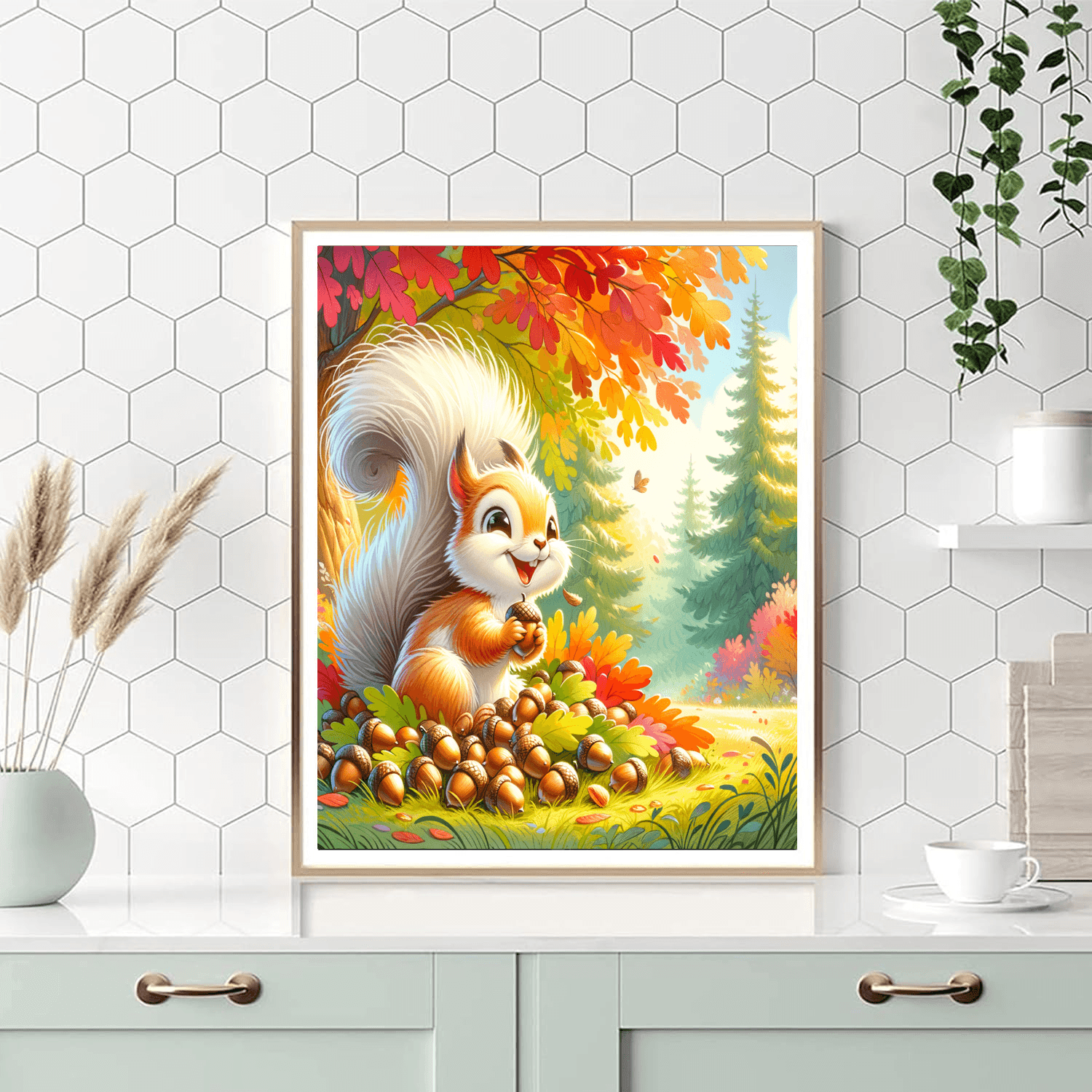 This charming product features a sunny squirrel gathering acorns in a forest. Kids will enjoy coloring this playful creature while learning about squirrels and their habitats. This design promotes curiosity about wildlife and nature. The completed artwork can be displayed in a childs bedroom or play area, inspiring a love for animals and the great outdoors.
