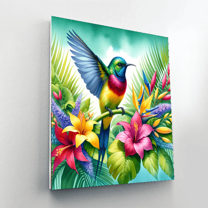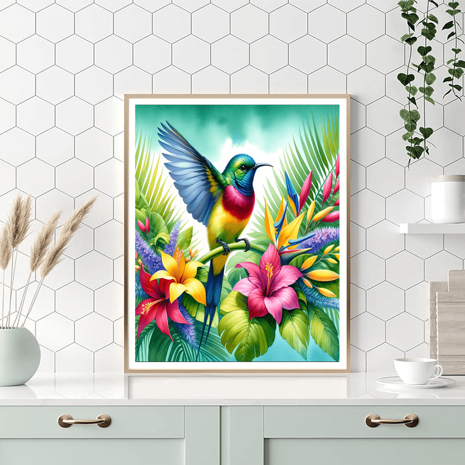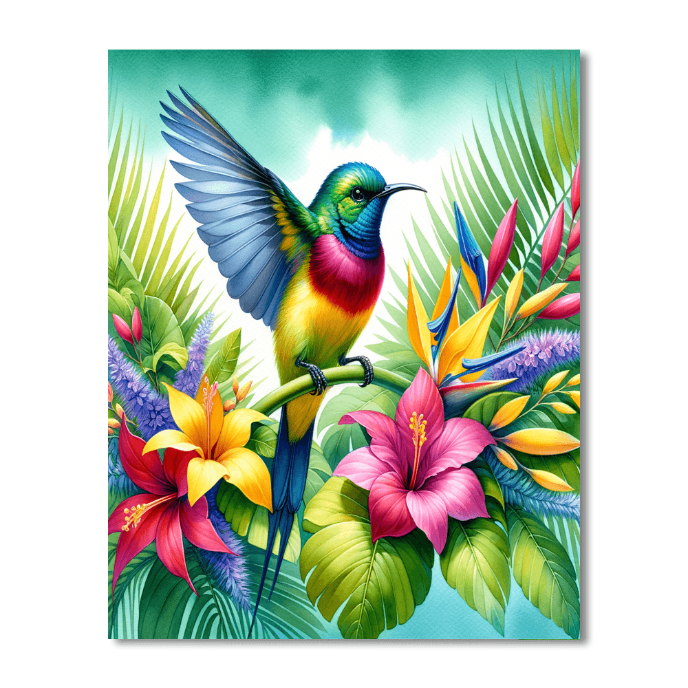 This vibrant kit features a sunny sunbird perched on a branch, surrounded by tropical flowers. It encourages kids to express their creativity while learning about birds and their habitats. Perfect for ages 7-12, this product promotes artistic expression and curiosity about nature. The finished artwork can brighten up any childs room or play area, making it a fun addition to their decor.