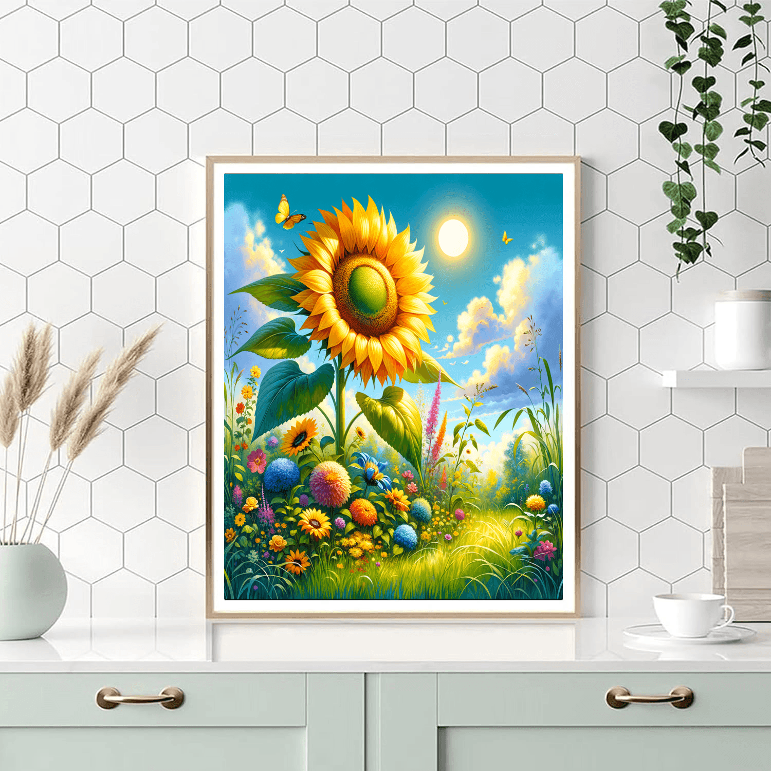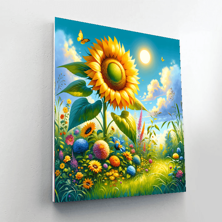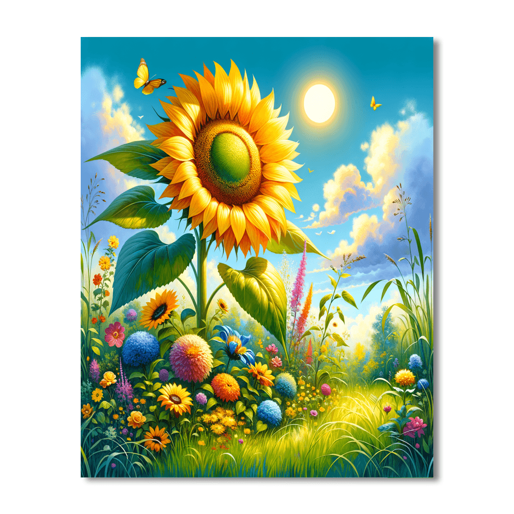 This bright product features a cheerful sunflower standing tall in a sunny field. Kids will enjoy coloring this vibrant flower while learning about the importance of plants and nature. This design promotes creativity and an appreciation for the environment. The completed artwork can be displayed in a childs bedroom or play area, adding a touch of brightness to their space.