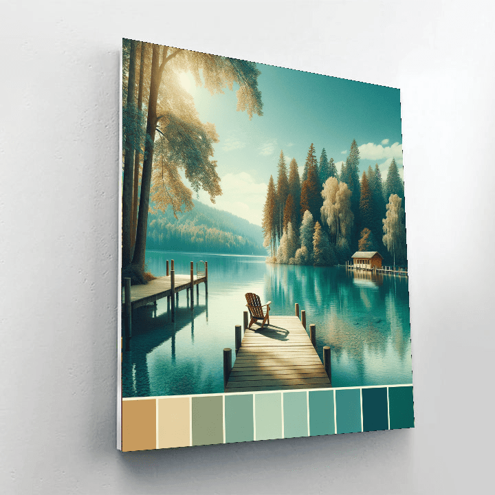 Escape to a tranquil lakeside scene, where the gentle lapping of water and the rustle of leaves create a serene atmosphere. This peaceful scene is perfect for a living room or study, offering a moment of calm and reflection amidst the hustle and bustle of daily life. The soothing palette and gentle composition create a sense of balance and harmony, making it a perfect choice for those who seek tranquility in their home decor.
