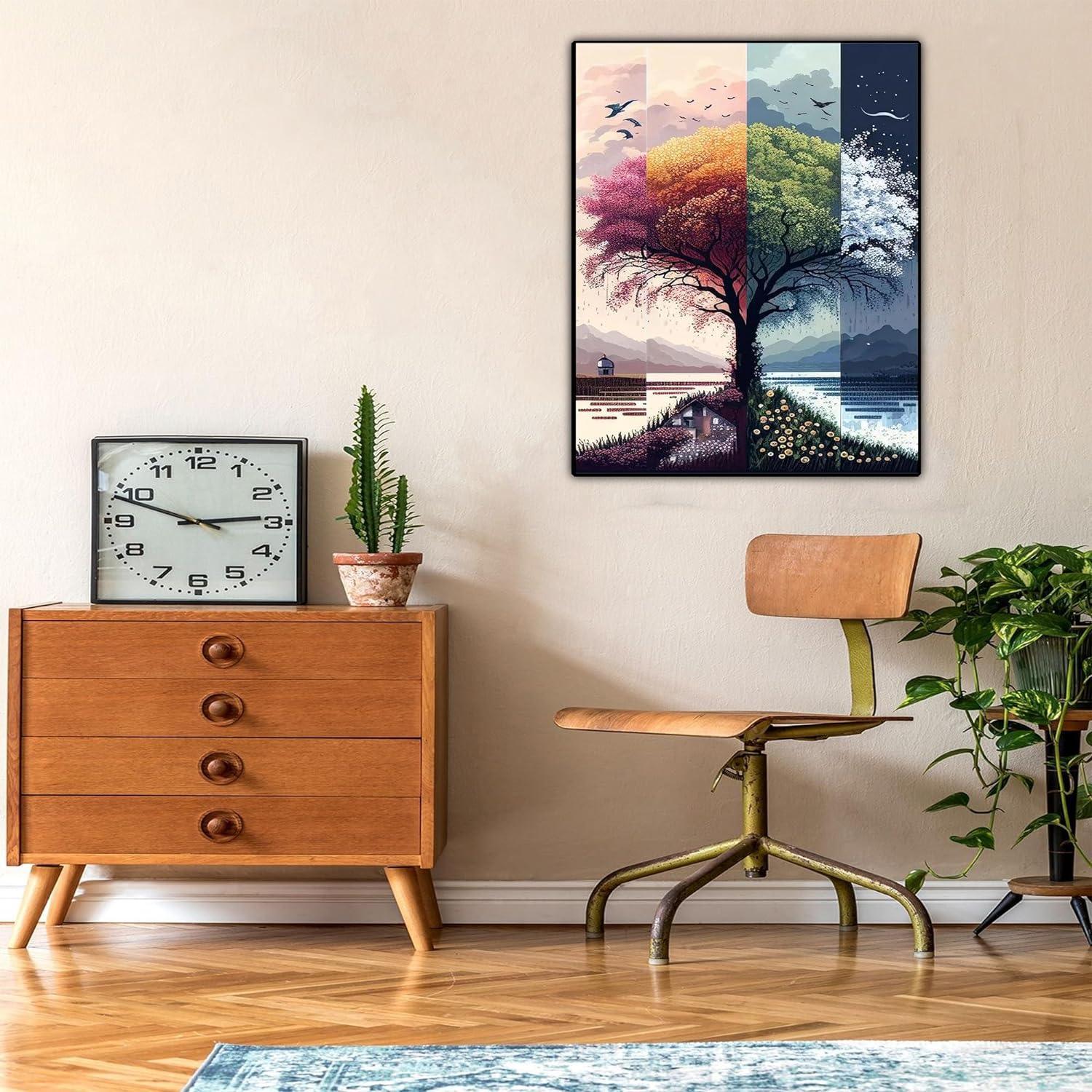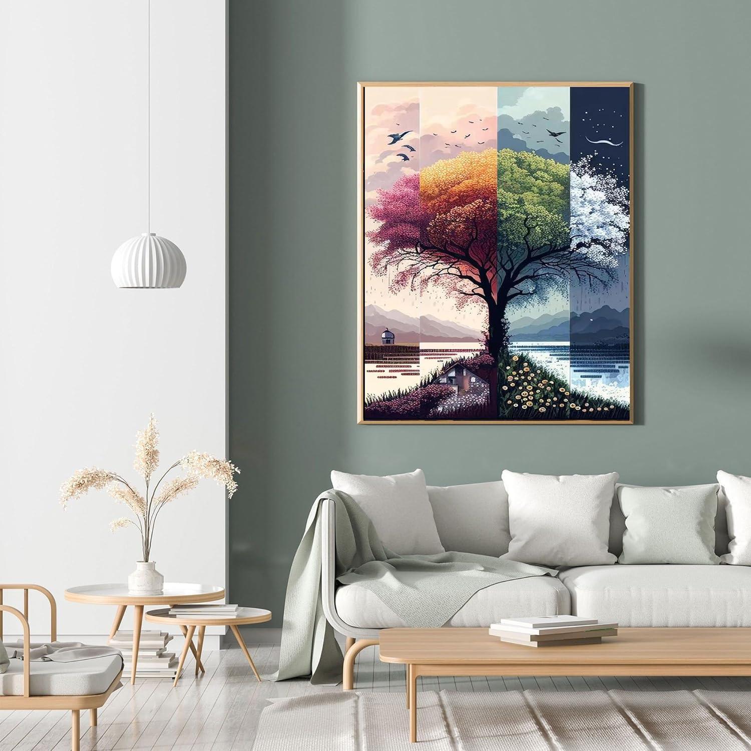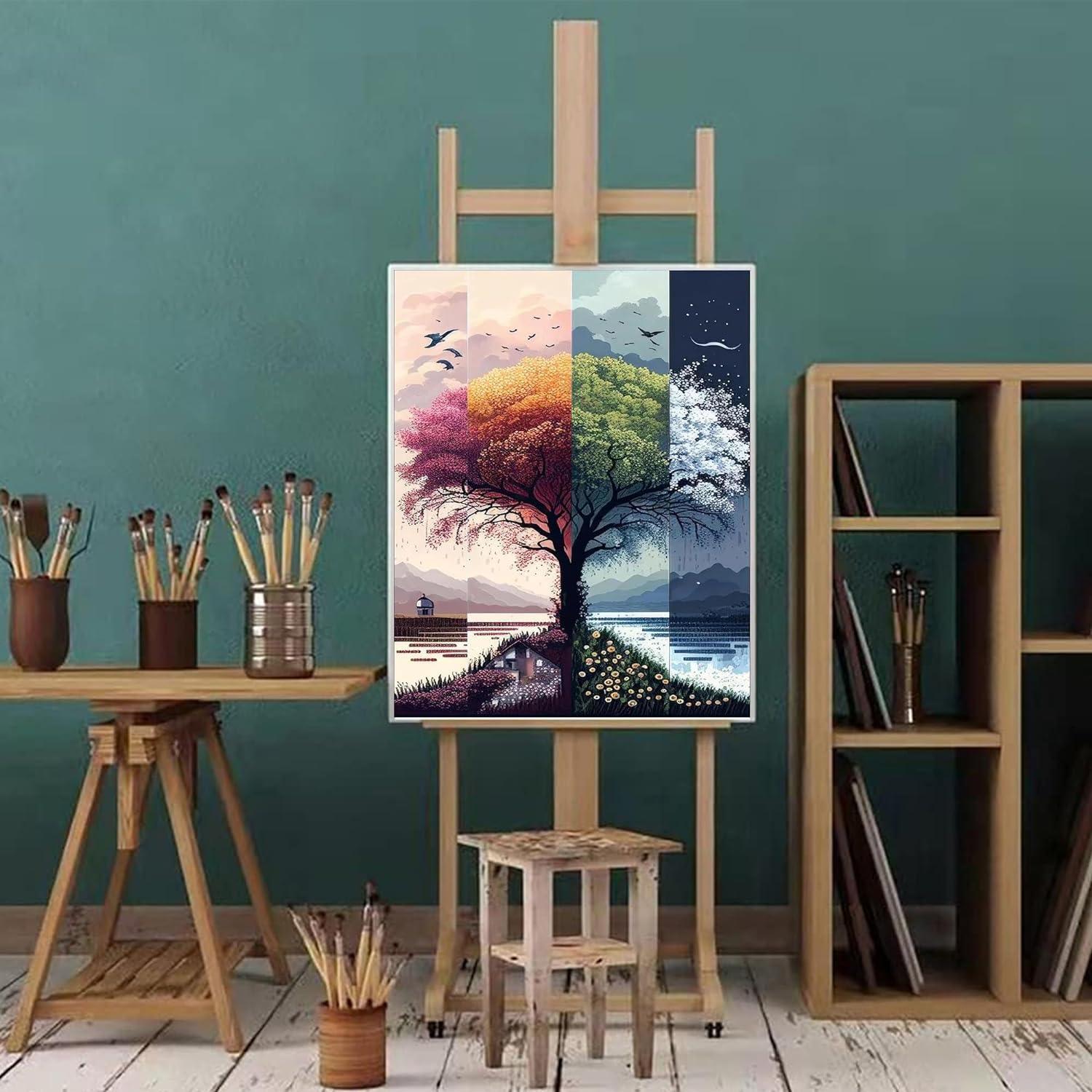 Embrace the rhythm of nature with our Tree Paint By Number Kit. This collection of four panels artfully depicts the changing seasons, each one a harmonious blend of color and pattern, celebrating the serene beauty of the natural world.