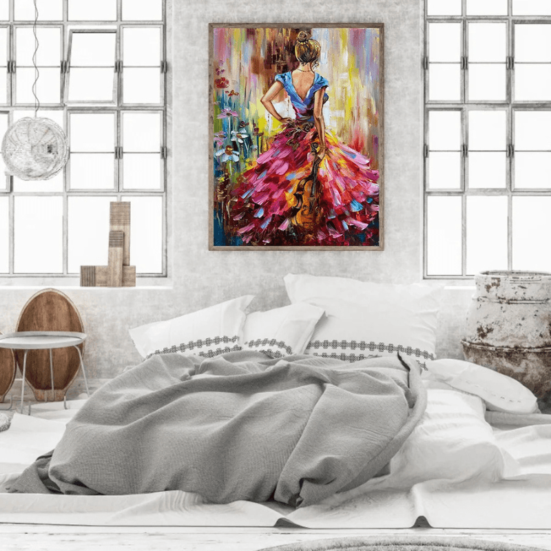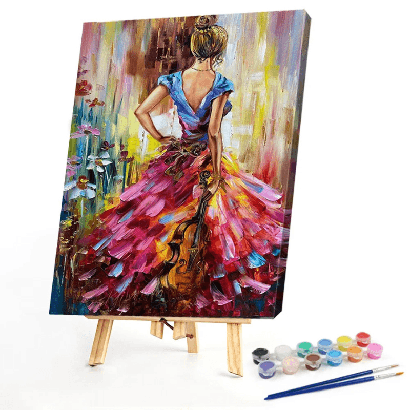 The Vibrant Dressed Themed Paint By Numbers Kit offers a graceful and artistic painting experience, capturing an elegant silhouette with stunning detail. Featuring a high-quality pre-printed cotton canvas with clearly marked numbers, this kit ensures a seamless and enjoyable process for all skill levels. The included vibrant, quick-drying acrylic paints enhance the scene with bold and rich colors, resulting in a beautifully expressive artwork for display.