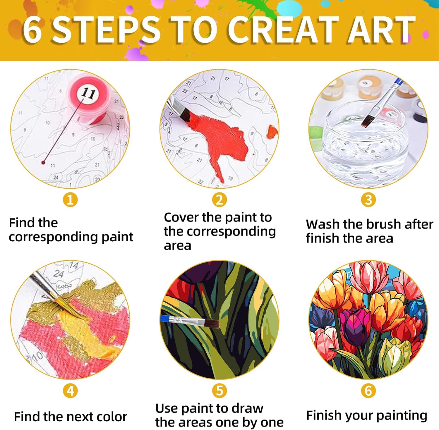 Special Features: Numbered sections on the canvas correspond to the paint pots for convenience.