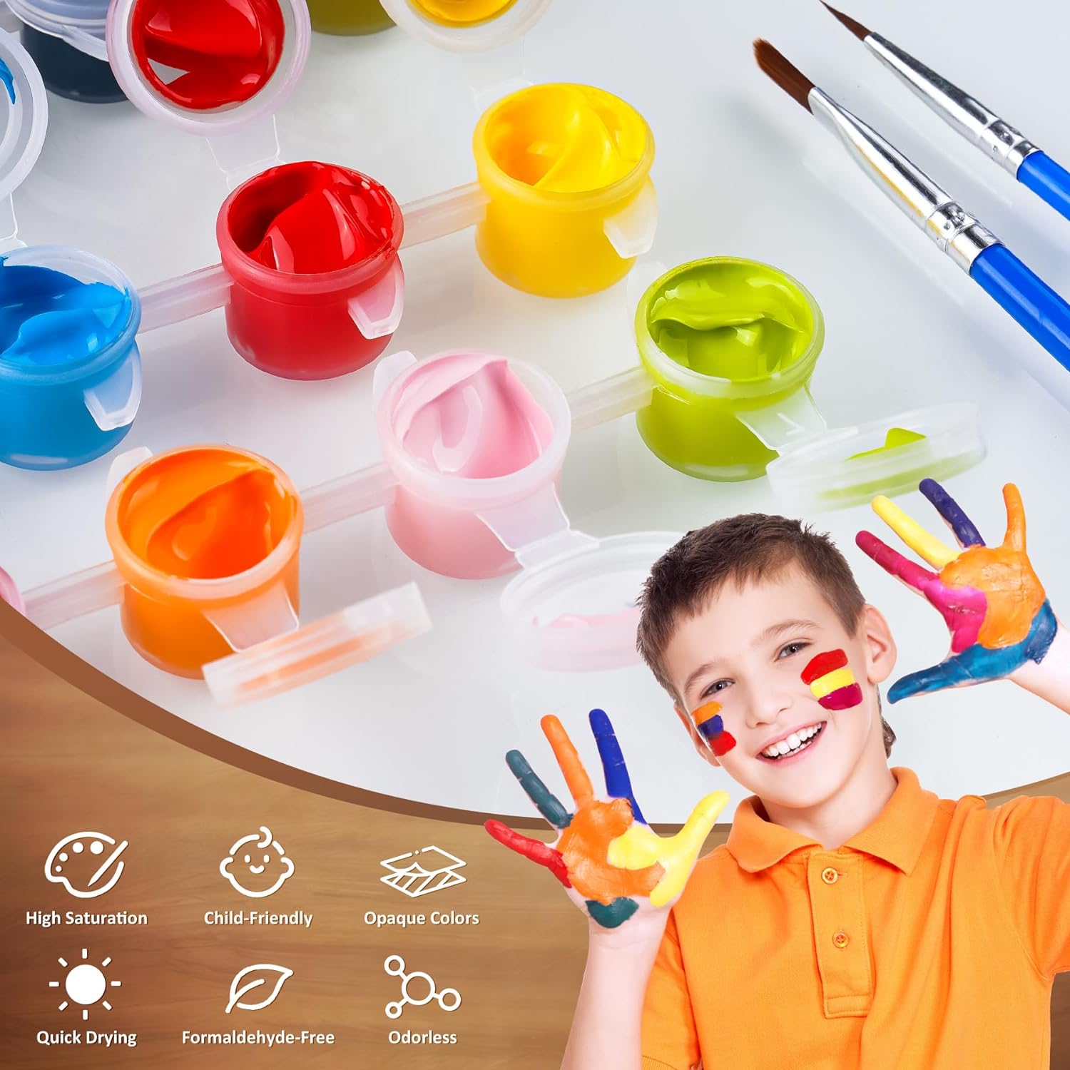 Technical Specifications: The kit includes non-toxic, high-quality acrylic paints known for their bright hues and durability.