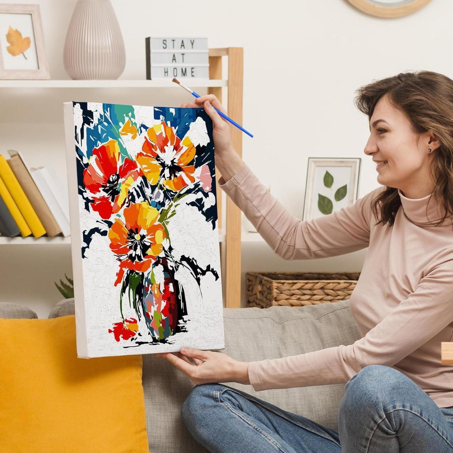 Immerse yourself in the art of painting with our Vivid Blossoms Paint-by-Numbers Kit, where each brushstroke brings you closer to a bouquet of brilliant flowers. Bursting with color, this painting kit allows you to create a masterpiece that's a celebration of natural beauty and artistic expression.