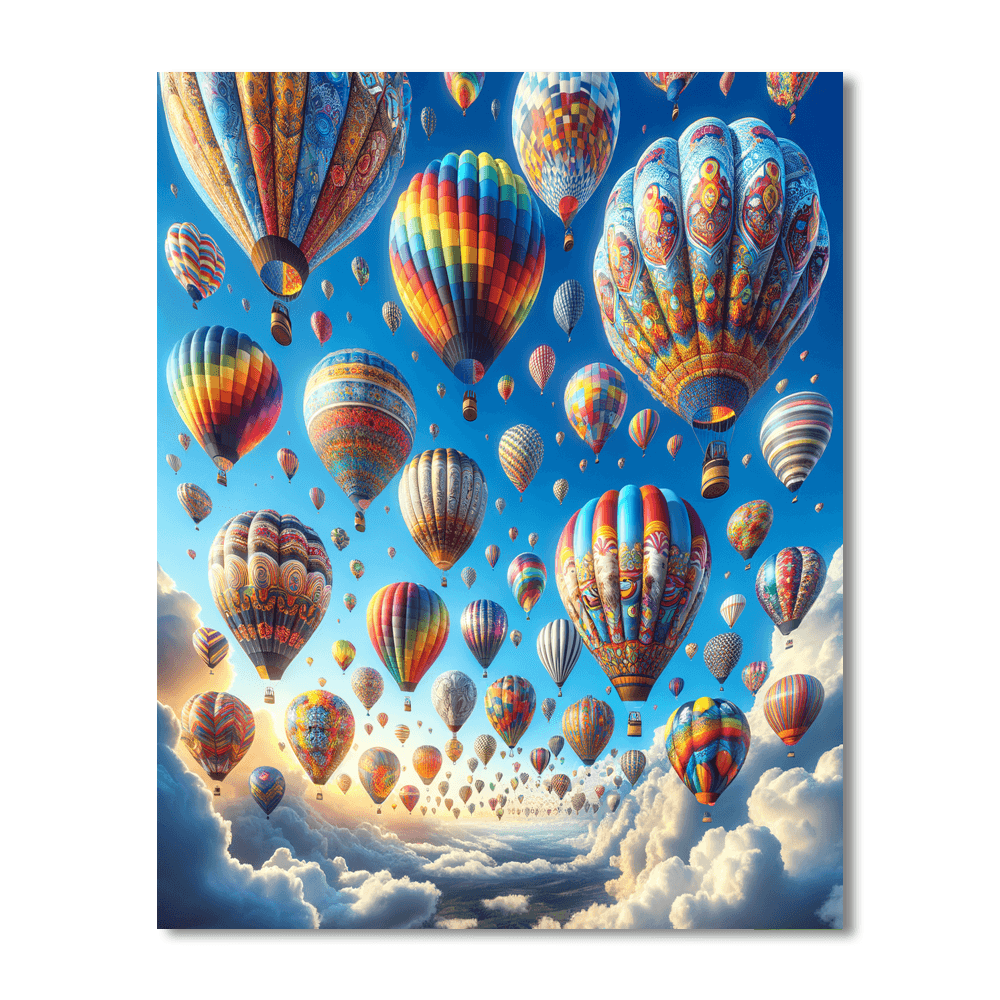 The Whimsical Balloon Festival brings to life the joyous spectacle of colorful hot air balloons ascending into a clear sky. This vibrant and playful product is perfect for adding a splash of color and a sense of adventure to any room. Its particularly suited for childrens bedrooms or play areas, offering a stimulating visual that encourages creativity and dreams of travel. The array of colors and the dynamic composition make it a delightful focal point that can brighten and energize any space.