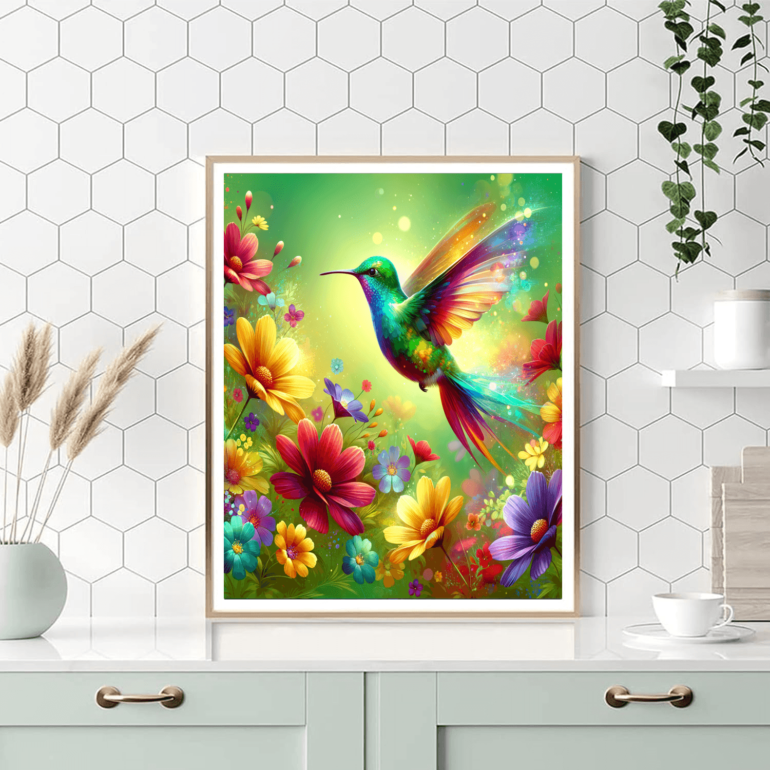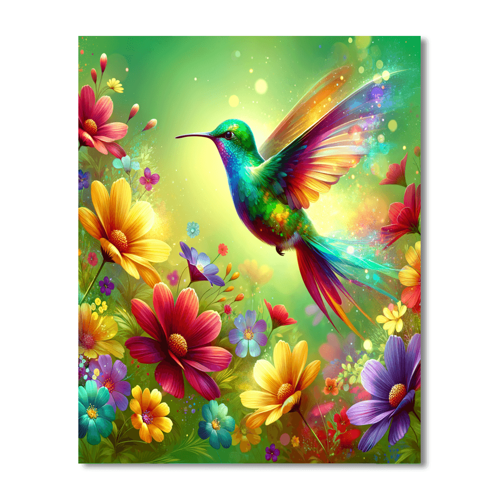 Delight in the beauty of nature with this enchanting depiction of a hummingbird surrounded by vibrant flowers. This product is perfect for those who love birds and nature, adding a touch of whimsy to any space. Ideal for childrens rooms, nurseries, or gardens, it inspires joy and creativity.