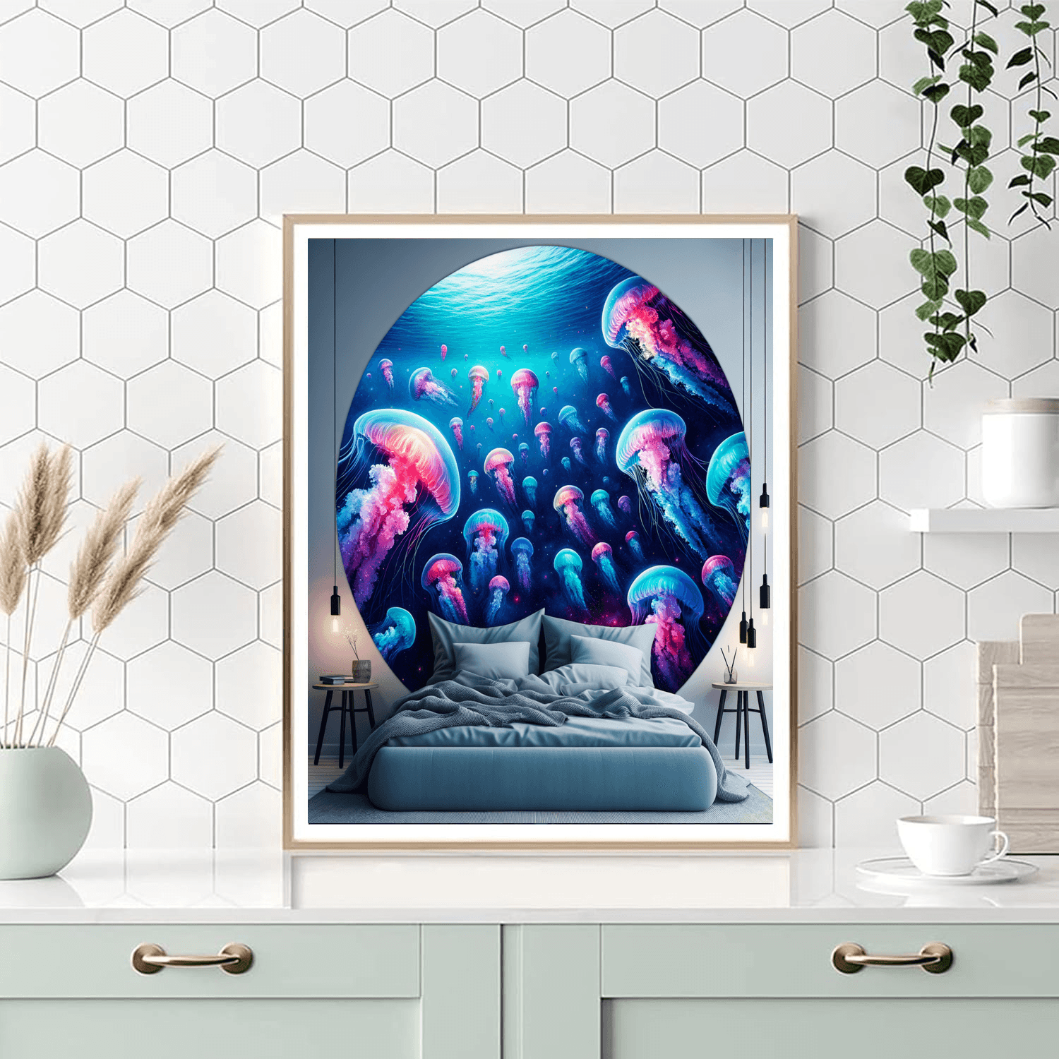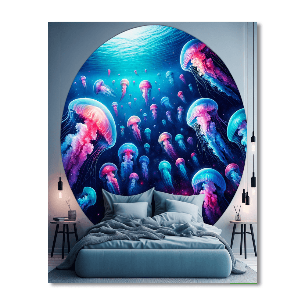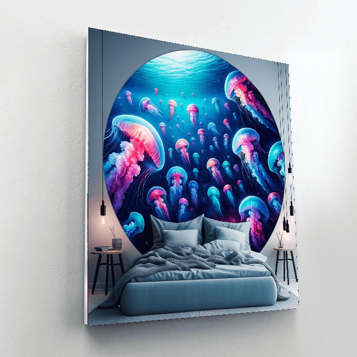 Dive into a whimsical underwater world with the Whimsical Jellyfish Dream artwork. This enchanting piece features colorful jellyfish floating gracefully amidst swirling ocean currents. Bring a touch of marine magic to your space with this captivating art that sparks the imagination.