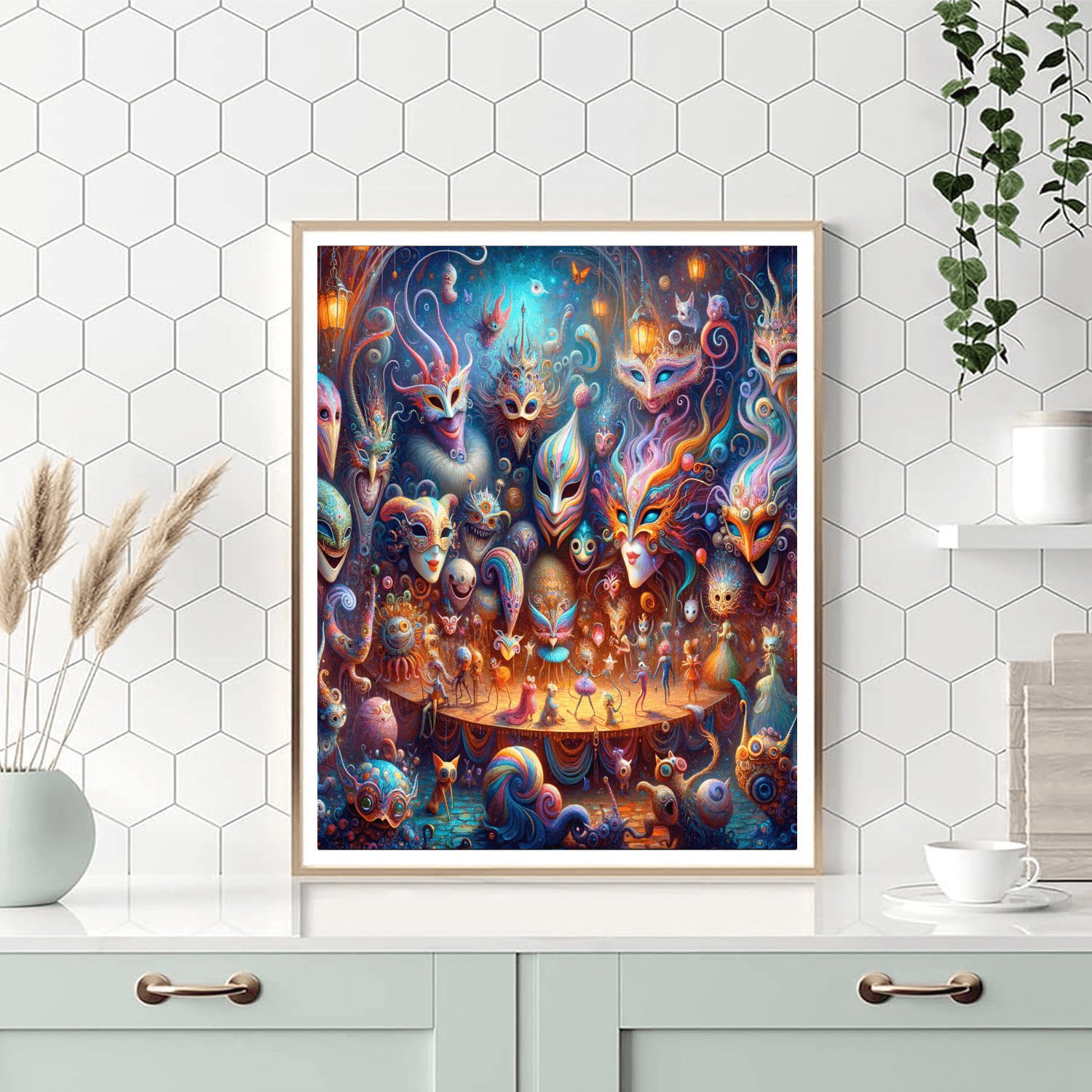 Enter a whimsical wonderland masquerade with this enchanting painting kit. Join in the magical festivities as fantastical creatures don masks and costumes for a night of mystery and revelry. Let the charm and whimsy of this fantastical world inspire your creativity and transport you to a place where imagination reigns supreme.