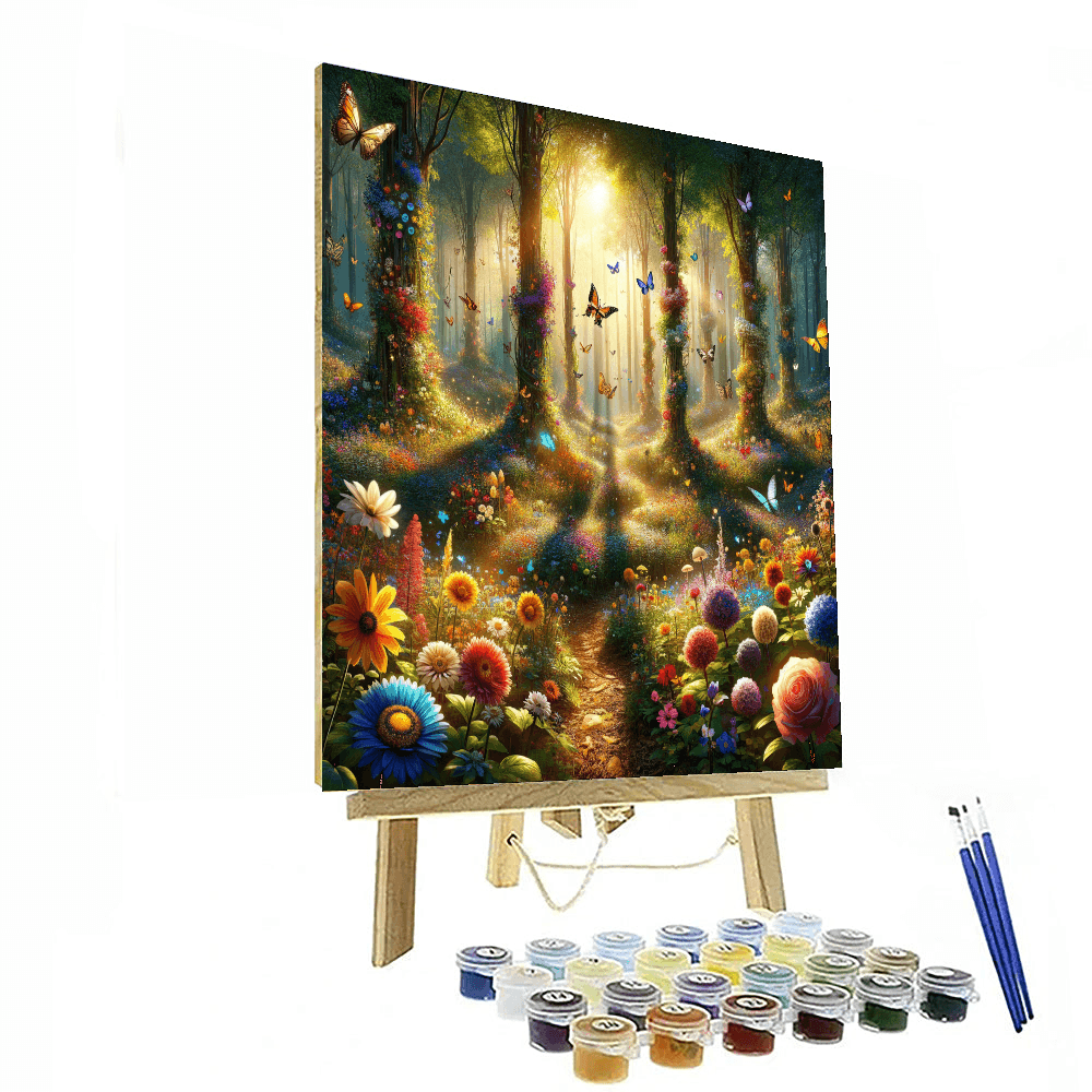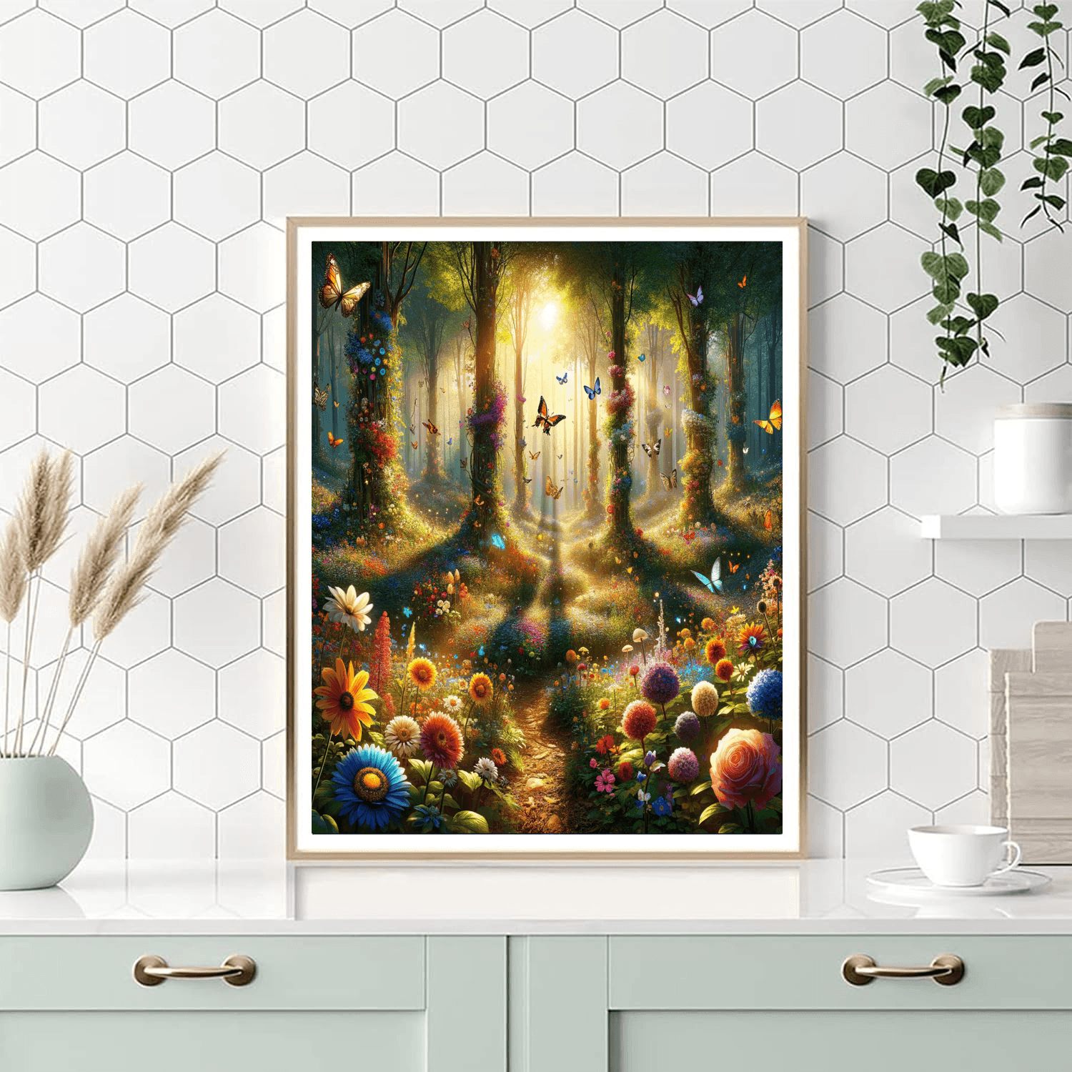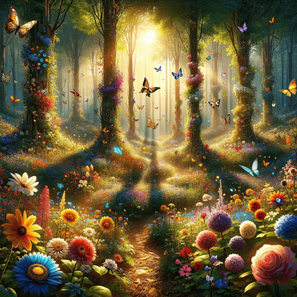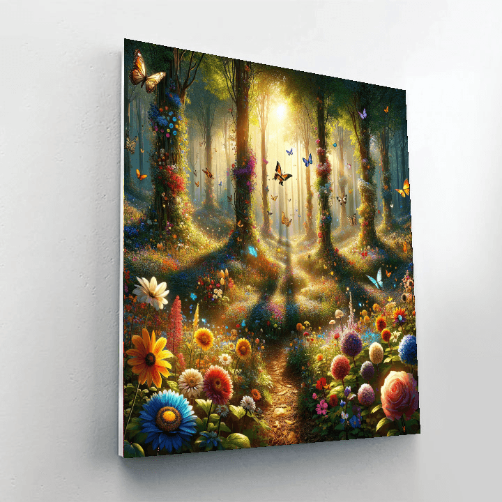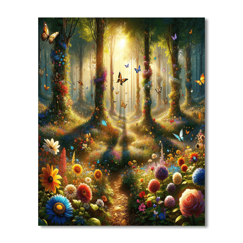 Escape to a Whimsical Woodland Retreat with this enchanting painting that captures the magic of the forest. The scene features a secluded woodland glade filled with colorful flowers, fluttering butterflies, and playful woodland creatures. The sunlight filters through the canopy, creating a dappled pattern on the forest floor and casting a warm glow on the scene. Let the beauty of this woodland retreat inspire you as you explore the whimsical world of the forest.